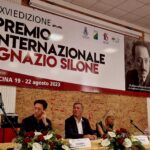 Martedì 22 agosto 2023 solo posti in piedi al Teatro San Francesco di Pescina nella giornata conclusiva del Premio internazionale Ignazio Silone, con in programma la cerimonia di premiazione. Quattro giorni di eventi, dal 19 al 22 agosto, hanno caratterizzato l’edizione 2023 del Premio, tutti seguiti con notevole interesse. Dunque pubblico delle grandi occasioni e un parterre istituzionale che ha visto la presenza dei parlamentari abruzzesi Nazario Pagano e Guido Quintino Liris, del Vicepresidente della Regione Emanuele Imprudente, dell’Assessore regionale Mario Quaglieri, dei Consiglieri regionali Americo Di Benedetto e Antonietta La Porta, e soprattutto dell’ospite, il Sindaco di Pescina Mirko Zauri anche Presidente del Centro Studi Ignazio Silone.