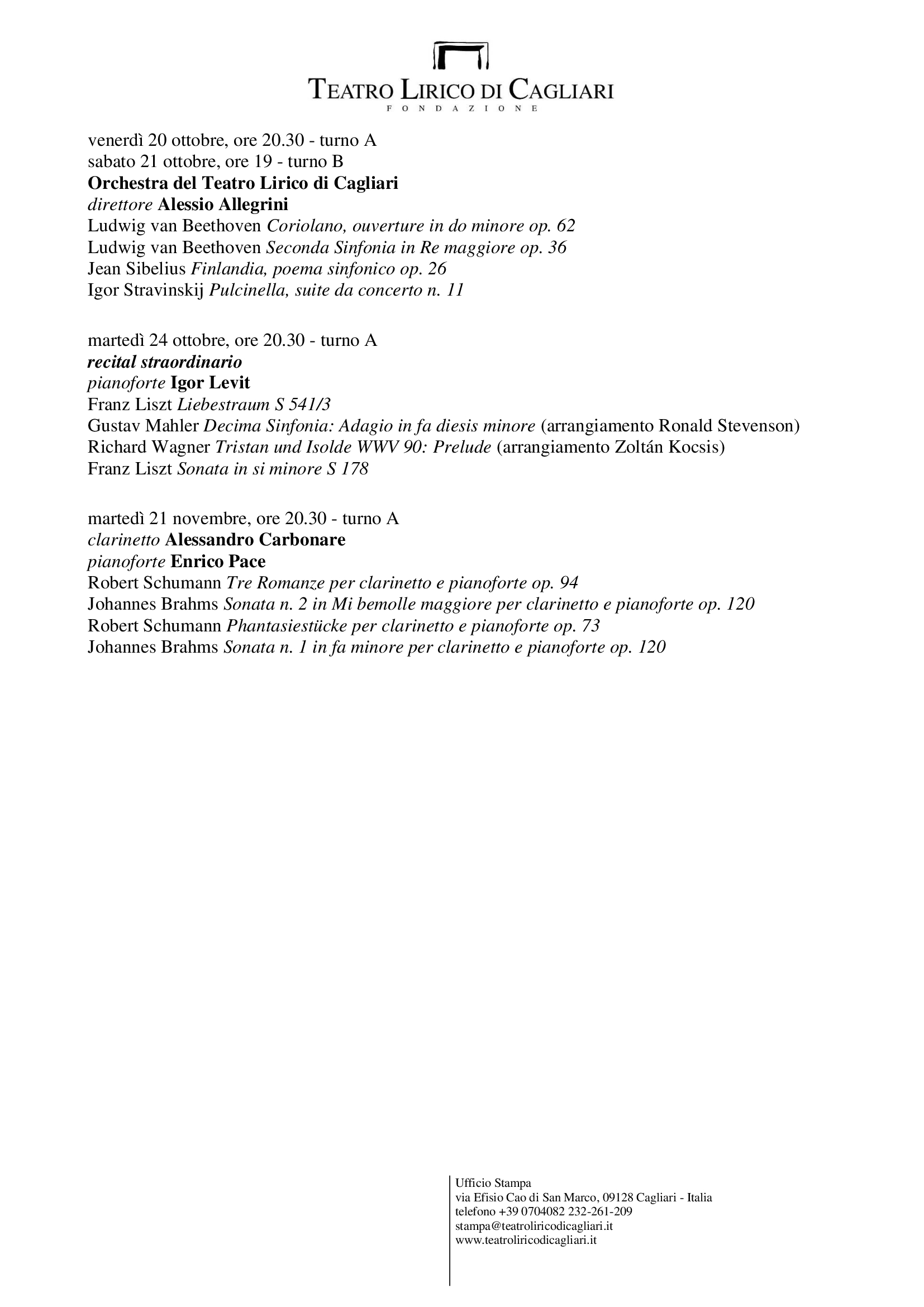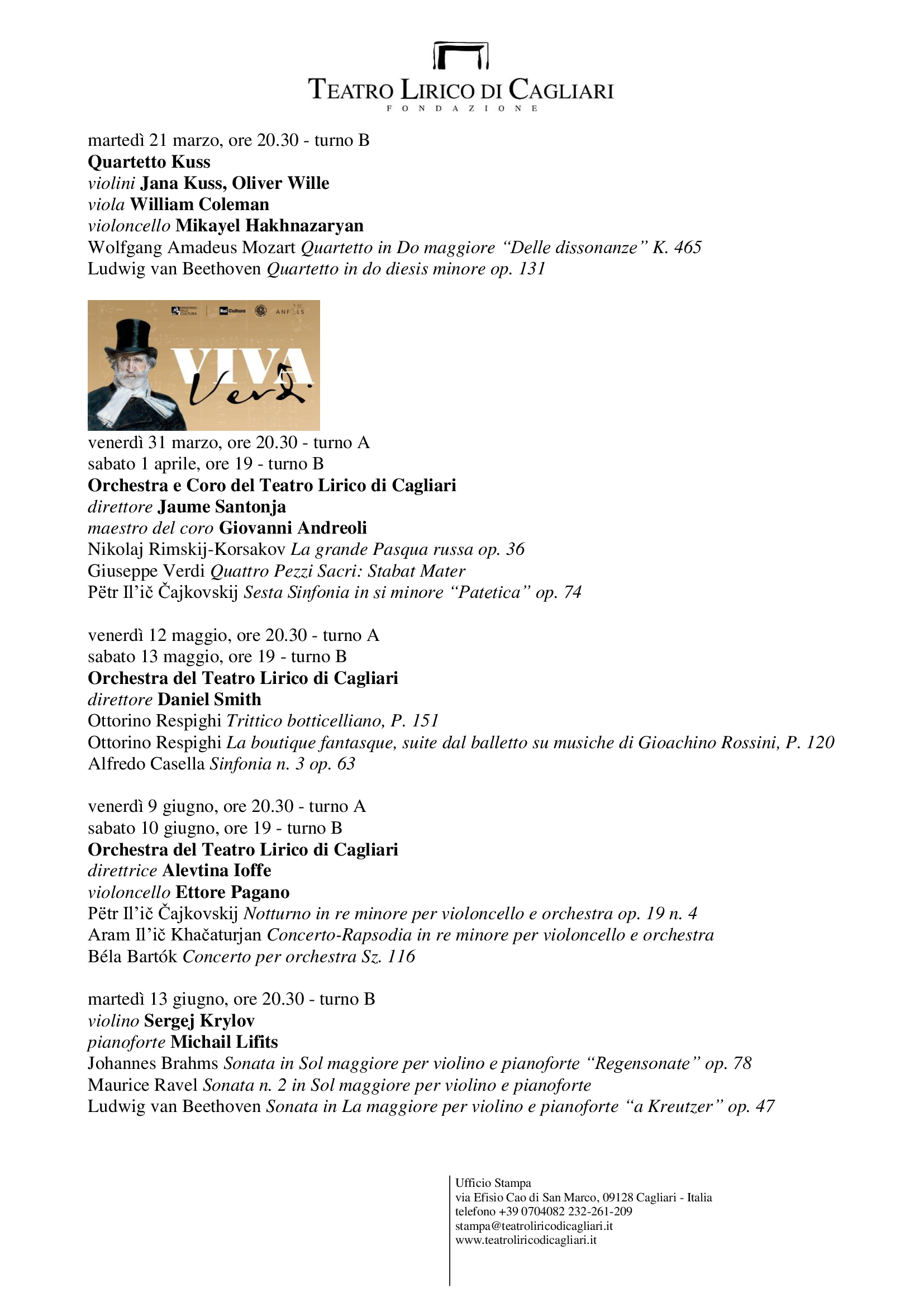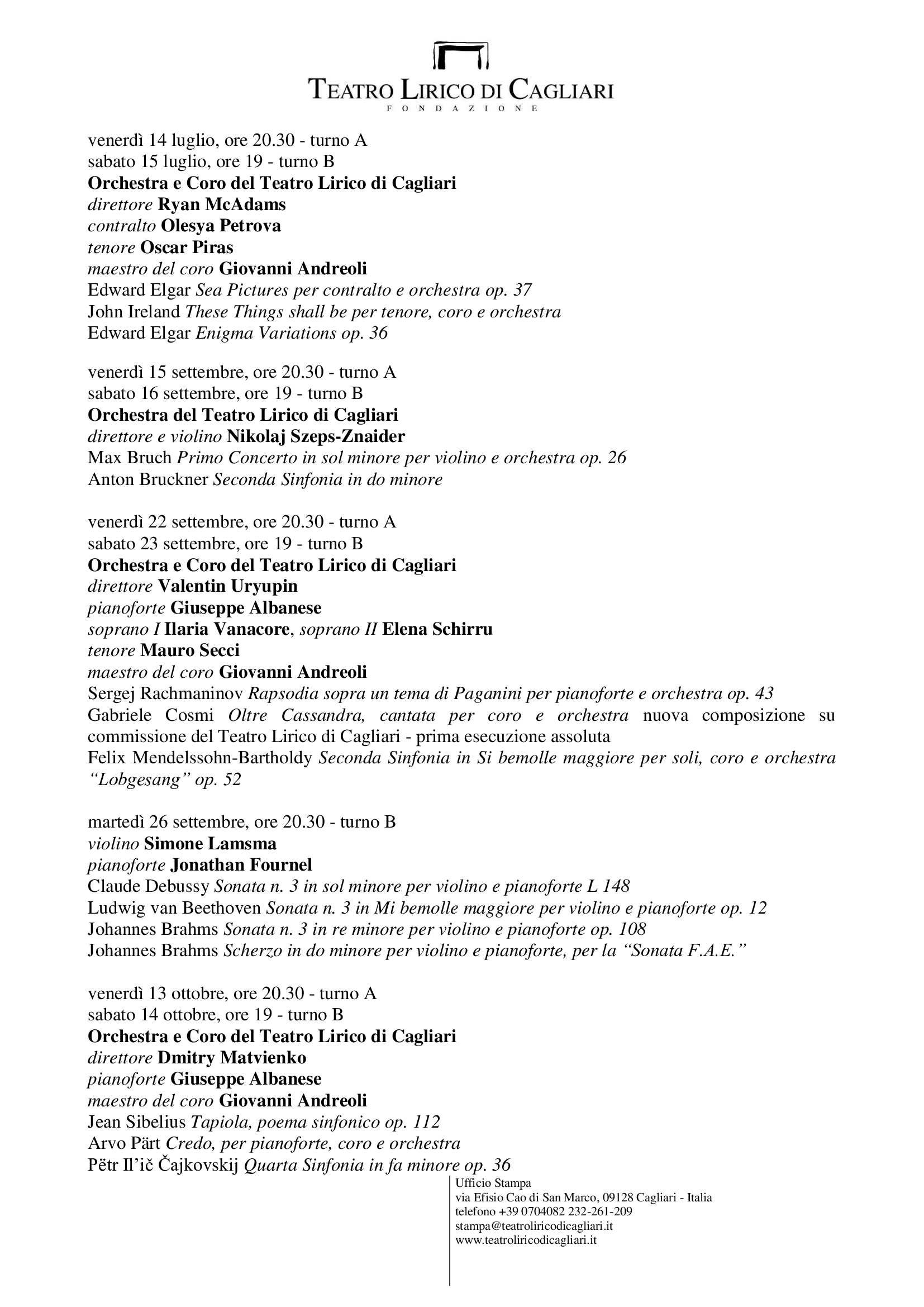 Teatro Lirico di Cagliari, via Efisio Cao di San Marco, 09128 Cagliari – Italia telefono +39 0704082209 – stampa@teatroliricodicagliari.it – www.teatroliricodicagliari.it