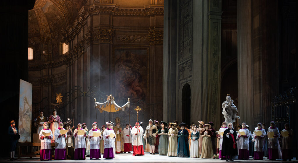 Nessuna opera è legata ad una città quanto Tosca con Roma: e non solo per ragioni librettistiche, che vedono il dramma aprirsi qualche giorno dopo la caduta della prima Repubblica Romana. La terrazza di Castel Sant’Angelo, gli interni dorati di Sant’Andrea della Valle, i rintocchi del Mattutino che Giacomo Puccini aspettava di cogliere all’alba per annotarsi l’intonazione corretta da inserire in partitura. «Non ho mai smesso di ammirare la sottigliezza e la cura dei particolari con cui Puccini crea i suoi scenari – dice Alessandro Talevi – e il modo in cui richiedono costantemente un’indagine psicologica profonda da parte di cantanti e regista». Seguendo le originali volontà pucciniane, il regista ha ricostruito per lo spettatore odierno la Roma vissuta dal compositore lucchese. Talevi, che nel 2007 ha vinto l’European Opera-directing Prize per la sua Rusalka, in Italia ha collaborato con il Maggio Fiorentino, il Regio di Torino, La Fenice di Venezia e, all’estero, con il Colorado Central City Opera di Denver – quest’ultimo un teatro in cui si è cimentato nei più diversi repertori (The Turn of the Screw di Britten, La damoiselle élue di Debussy, Litanies à la Vierge Noire di Poulenc) – e l’Opera North di Leeds. Formatosi alla Royal Academy of Music di Londra, ha creato nuove produzioni per questa e altre istituzioni musicali britanniche, come la Guildhall School of Music and Drama e il Royal College of Music; nella capitale inglese è stato inoltre direttore artistico della Independent Opera at Sadler’s Wells, e per la BBC Proms ha allestito uno spettacolo shakespeariano. La sua Tosca della prima assoluta è stata ospitata anche al Bunka Kaikan di Tokyo, all’Israeli Opera di Tel Aviv e al Teatro Real di Madrid, e riproposta negli anni regolarmente a Costanzi.