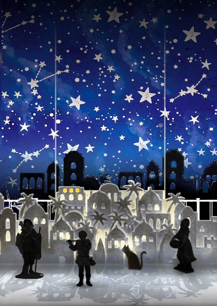 “Il presepe è una madre immobile di storie – aggiunge Bruno Tognolini. È il fermo immagine in 3D di un sacro film, potentissimo e bimillenario. Conosciamo tutti bene la vicenda, sapremmo dire, riavvolgendo il nastro, ciò che è accaduto prima di quella scena fissa: perché e da dove quei pastori e lavandaie e popolani di ogni sorta sono arrivati lì, e perché guardano dentro quella grotta. E riattivando il ‘play’, sappiamo cosa accadrà da lì in avanti. Ma le storie millenarie sono alberi viventi, generativi: si rinnovano frondeggiando da ogni parte nuove ramificazioni, prequel, sequel, riadattamenti, apocrifi e spin off. L’operina ‘I salvatori della mezzanotte’ è una di queste fronde laterali, che parte da quel presepe, sblocca la pausa e fa ripartire la storia per vie alternative – ma, regola prima del gioco, sempre verso lo stesso finale”.