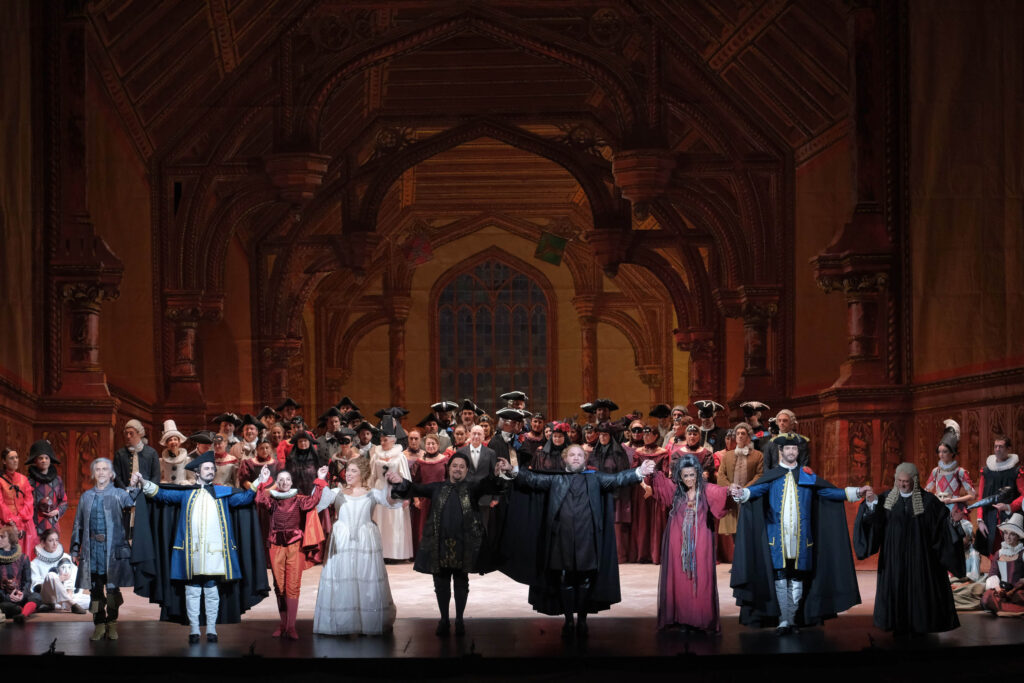 La vicenda si svolge non più alla corte illuminista svedese ma a Boston nel ‘600, ancora colonia inglese, dove il governatore, il Conte Riccardo, vanta amici e sostenitori, tra cui Renato, ma anche nemici disposti a congiurare e ucciderlo. L’intreccio politico fa da sfondo a quello amoroso che, una volta svelato, creerà un insanabile contrasto fra amore e lealtà: Riccardo è infatti segretamente innamorato di Amelia, moglie del suo migliore amico Renato. Alla musica forse più appassionata di tutto Verdi, si aggiunge la presenza, altrove non frequente e qui in perfetto equilibrio, dell’elemento soprannaturale, le profezie dell’indovina Ulrica, e di quello umoristico, incarnato dal paggio Oscar, scanzonato alter ego di Riccardo. Verdi crea in questa partitura un caleidoscopio di colori e personaggi, finezze piscologiche e orchestrali, e alcune delle melodie più belle e immortali del repertorio operistico.