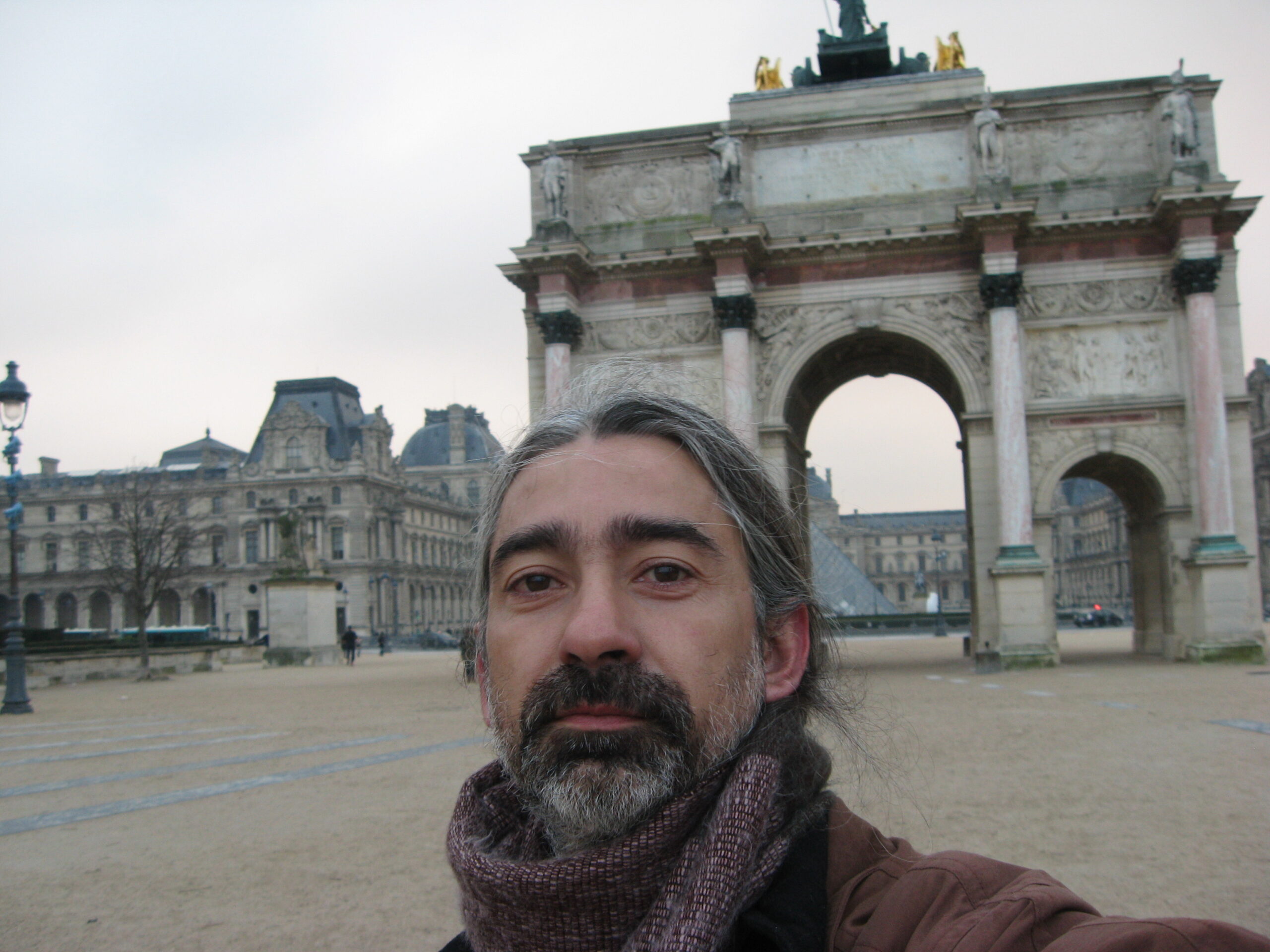 Me dirijo al Louvre por las calles de una ciudad que comienza a despertarse en un día cubierto de nubes y adornada por plátanos desnudos.