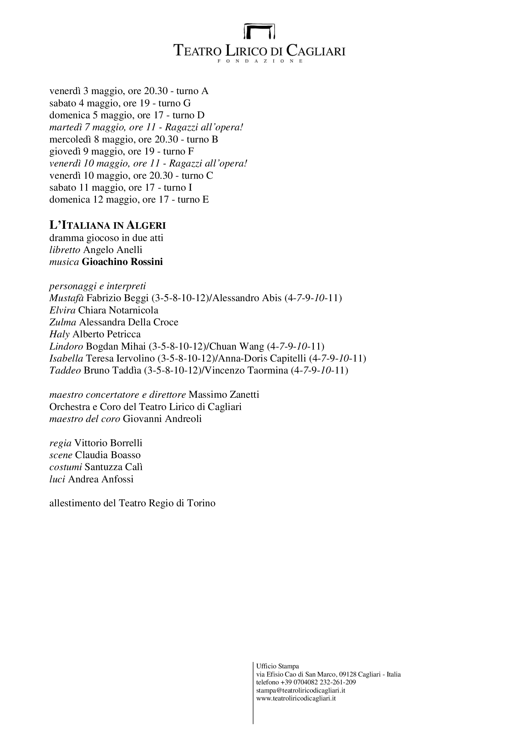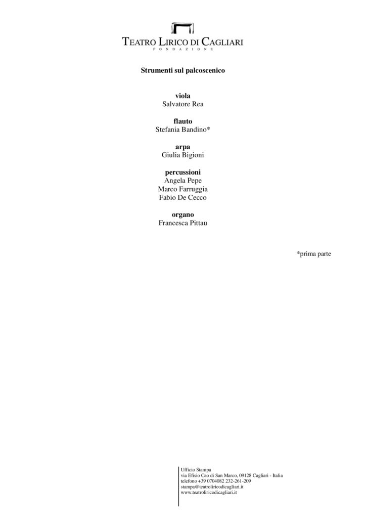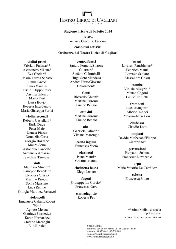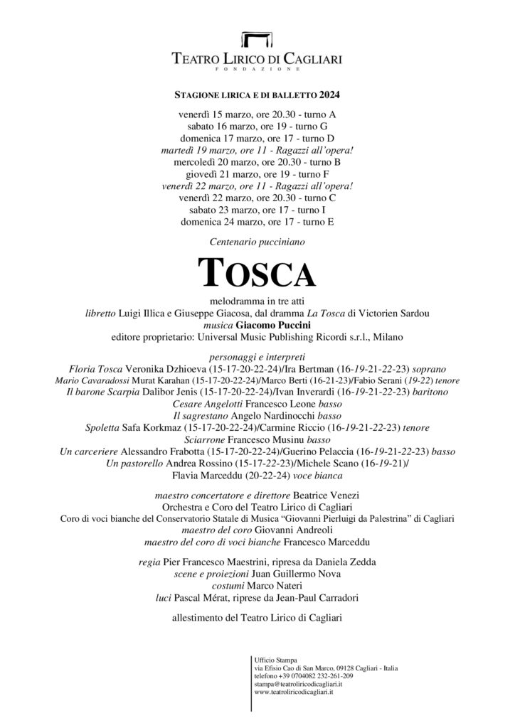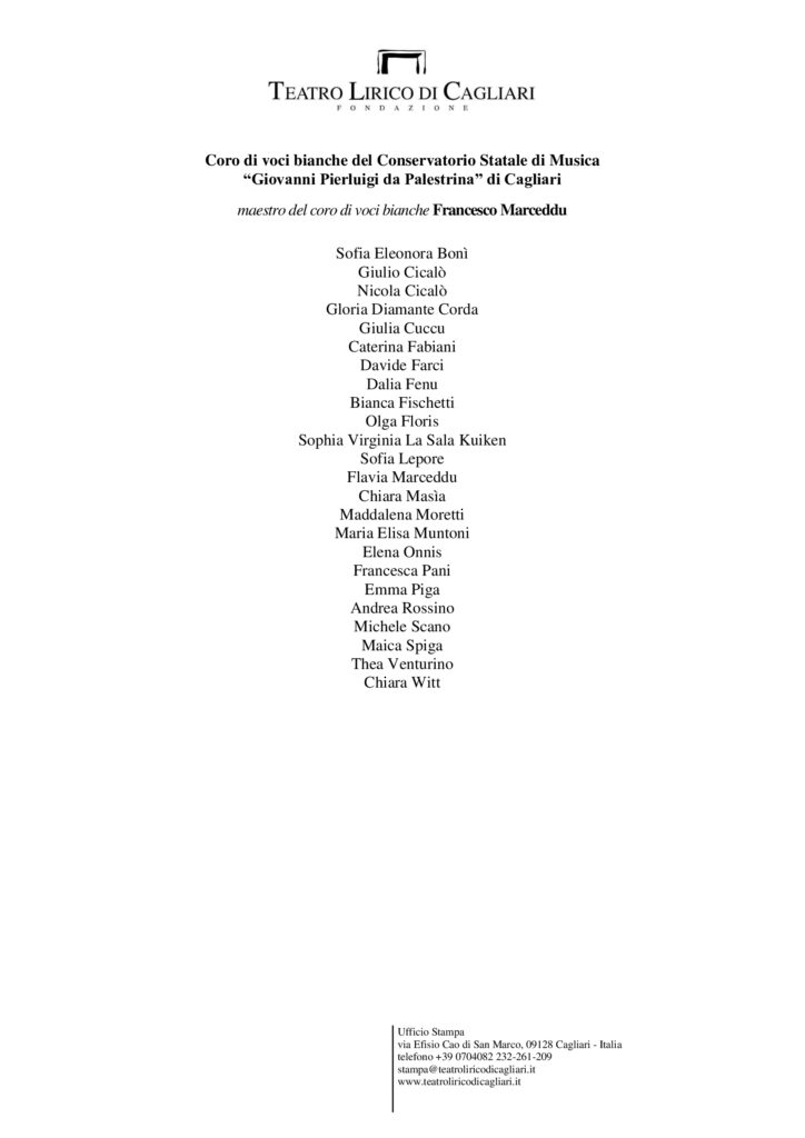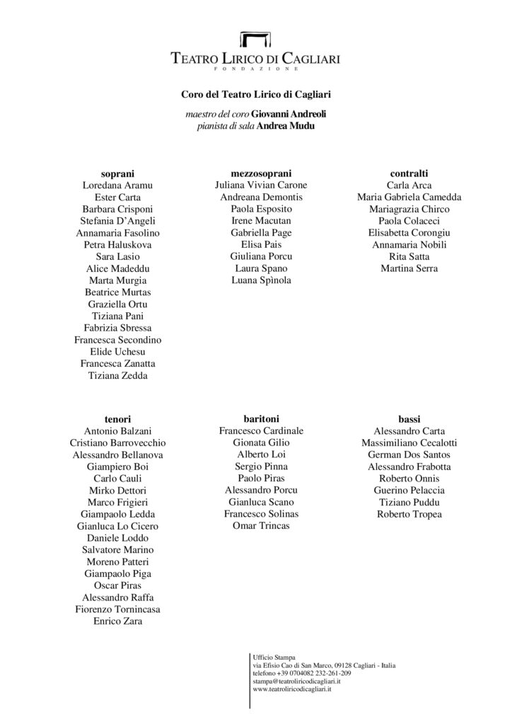Teatro Lirico di Cagliari, via Efisio Cao di San Marco, 09128 Cagliari – Italia telefono +39 0704082209 – stampa@teatroliricodicagliari.it – www.teatroliricodicagliari.it