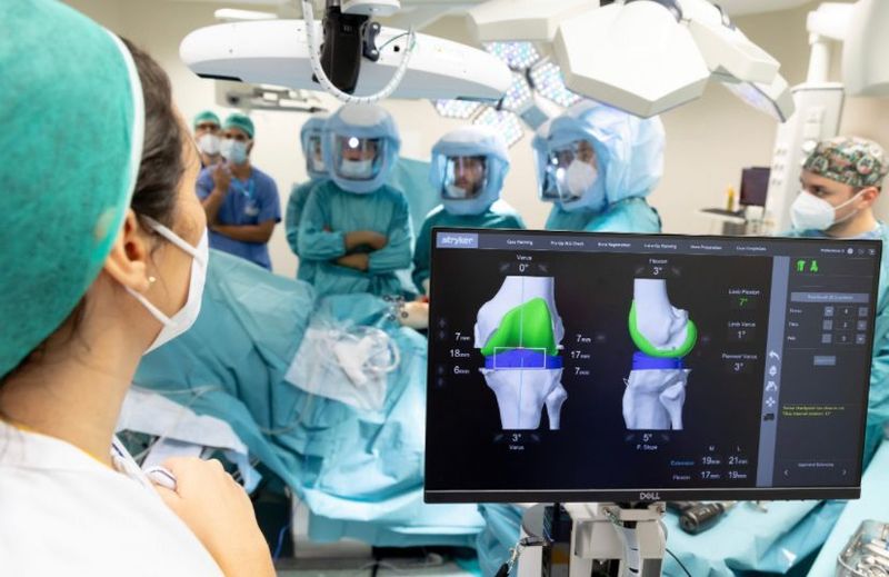 Questi dati vengono quindi confrontati con l’anatomia del paziente, analizzati dall’esperienza del chirurgo e sono fondamentali durante l’intervento in sala operatoria. Dove da qualche anno, a fianco degli specialisti è presente un robot, o meglio un braccio robotico chiamato Mako, che ha rivoluzionato la chirurgia ortopedica classica. In sala operatoria il chirurgo guida il braccio robotico con la possibilità di correggere e calibrare l’inserimento della protesi .