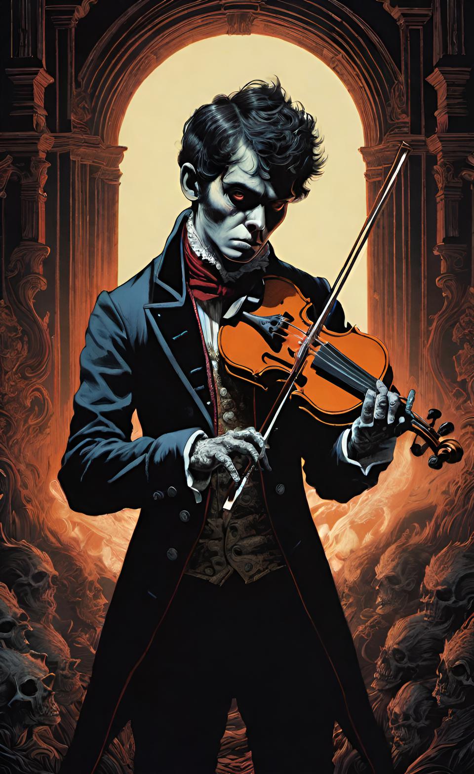 Arremetió con la música más dulce y extraña jamás oída. Una melodía que incitaba al llanto pero con un acompañamiento de cancioncilla cómica. Las dos fuerzas del universo en demonial contubernio estaban allí, entre sus cuatro cuerdas. Era asombroso que ese violín castigado por el uso sonara así.