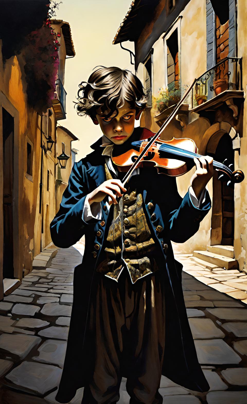 Un día un transeúnte pasó por la calle y me escuchó tocar. No me acuerdo que pieza salía de mi instrumento pero el hombre quedó encantado. Me preguntó qué edad tenía y luego dijo que conocía a personas que estarían dispuestas a pagar —un poco al principio— para que sirva como músico en su casa. Y así fue como comencé mi carrera modesta hasta que, pasados los años y los sinsabores de ser un músico llegué a ser un importante violinista.