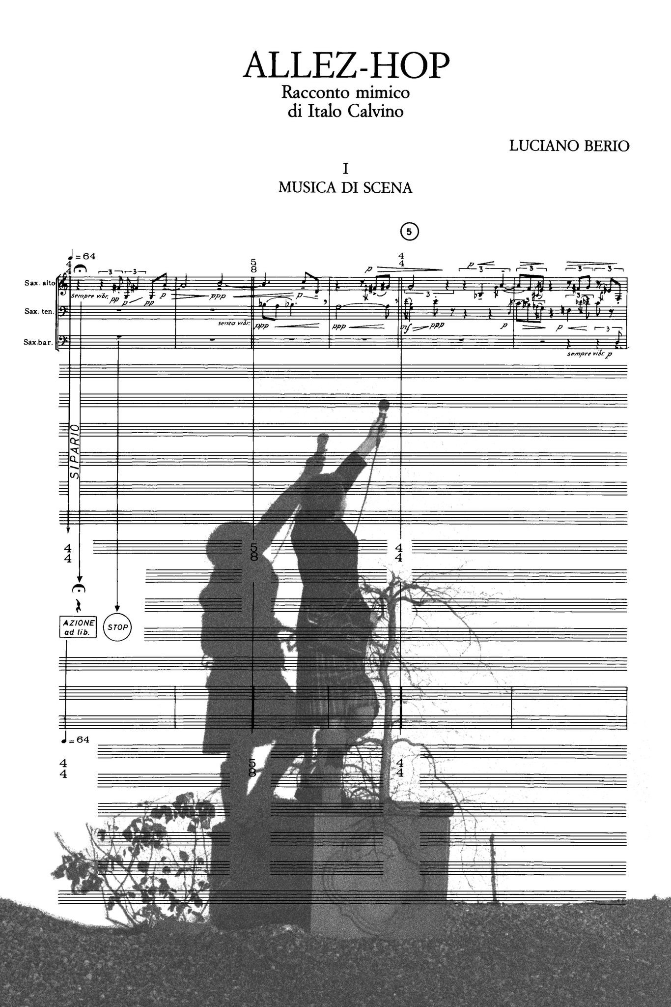 Ed eclettismo e contaminazione sono i pilastri portanti della breve opera Allez Hop. Da una parte il Calvino degli anni Cinquanta sta alternamente pubblicando scritti del filone realista – La speculazione edilizia (1957), La nuvola di smog (1958) – e opere fantastiche, come quelle riunite nella trilogia de I nostri antenati (1960). Dall’altra, Luciano Berio sta musicalmente sperimentando, attingendo con onnivora famelicità dai generi più disparati. Fra questi, ad esempio, quello della canzone. In Allez Hop – uno dei più profondi risultati di questo storico sodalizio artistico – la vita dell’annoiata società borghese è letteralmente mossa dalla fuga di una pulce dal suo domatore. Saltando di persona in persona, questa arriva a sconvolgere l’ordine internazionale. Una critica sociale mossa dai due artisti verso la satolla fissità degli anni Cinquanta.