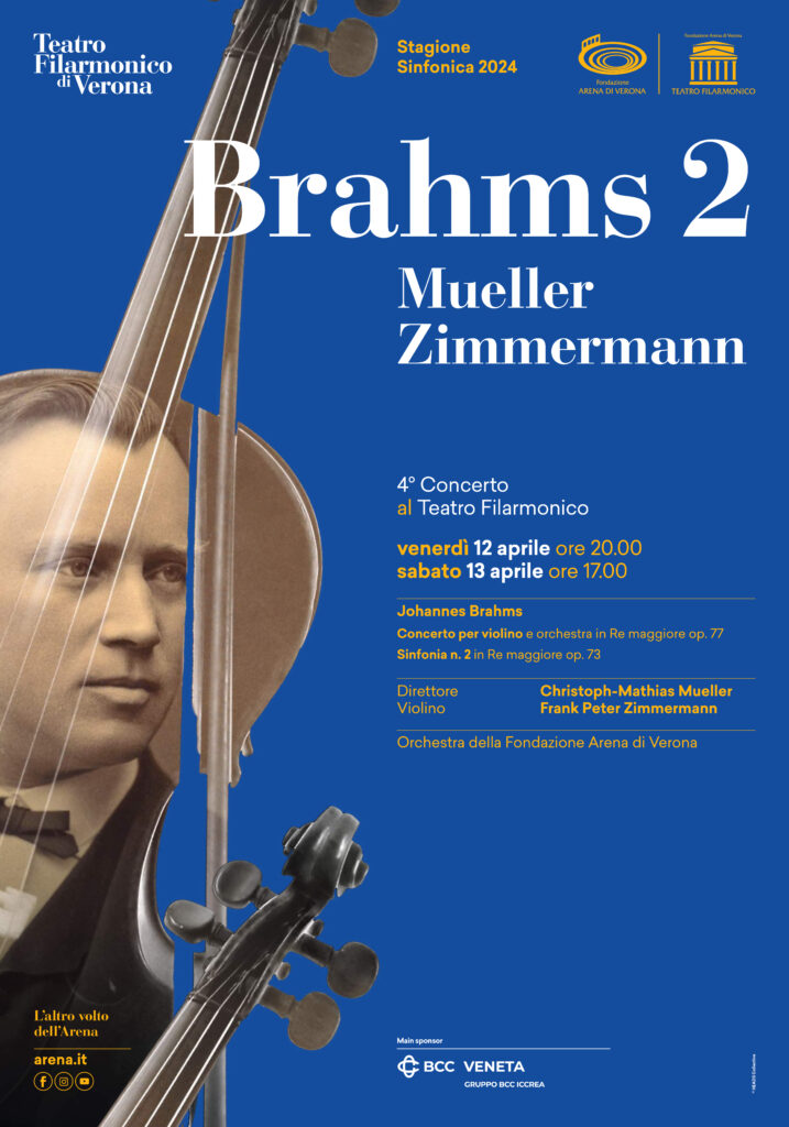 Il violinista Frank Peter Zimmermann, da oltre trent’anni fra i massimi virtuosi al mondo, debutta a Verona con l’Orchestra di Fondazione Arena: l’occasione è il secondo appuntamento della “primavera a tutto Brahms”, dedicata all’integrale di sinfonie e concerti del compositore tedesco, con direttori emergenti e solisti di fama internazionale. Venerdì 12 aprile, alle 20, e sabato 13 aprile, alle 17, è la volta di una pietra miliare del repertorio, il grandioso Concerto per violino e orchestra con il violinista tedesco Zimmermann quale solista d’eccezione, abbinato alla Seconda sinfonia in Re maggiore, che nel catalogo di Johannes Brahms è stata definita “pastorale” per il sapiente equilibrio di ombrosa timidezza e slanci gioiosi. Sul podio, anch’egli al debutto veronese, il maestro svizzero Christoph-Mathias Mueller.