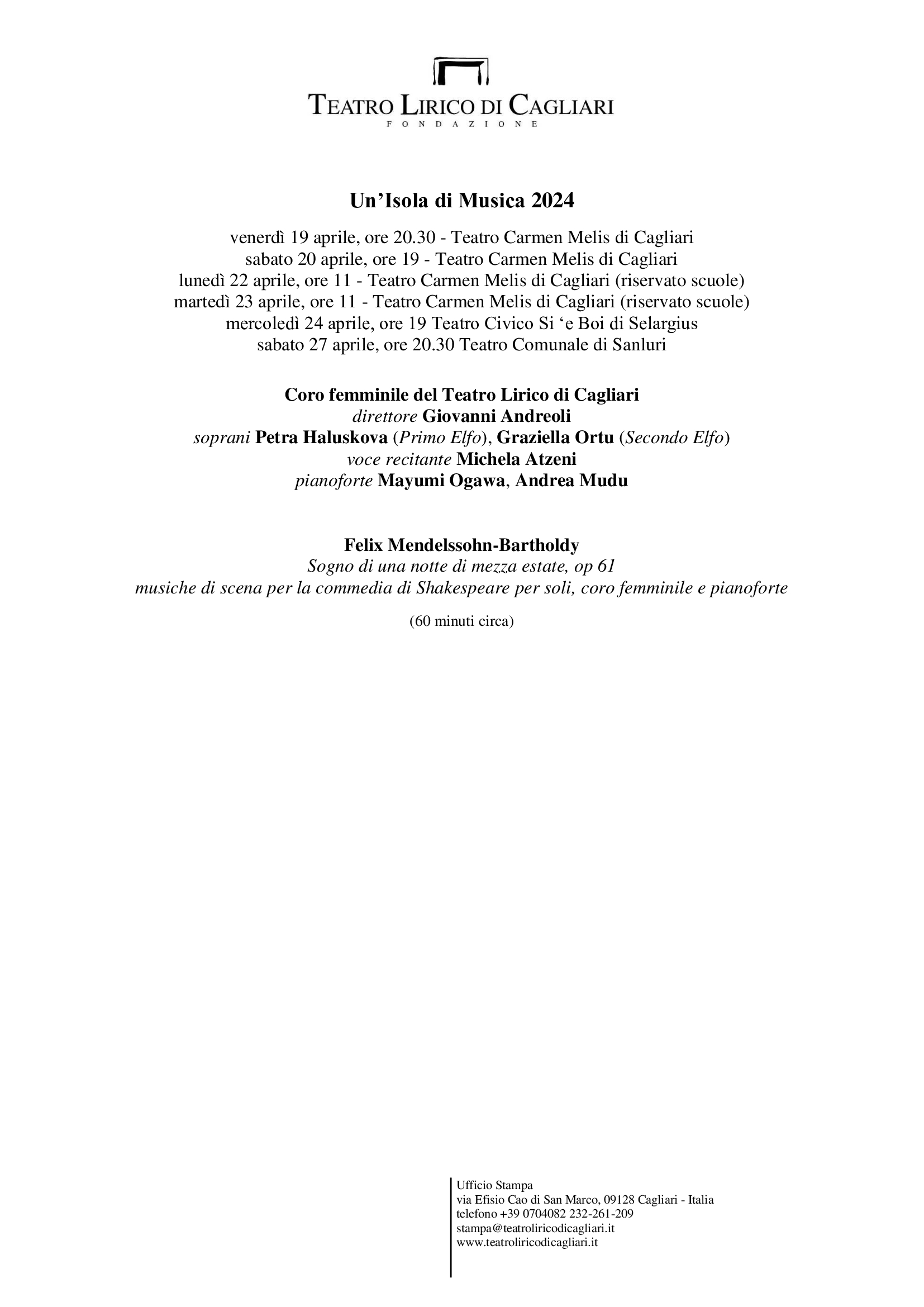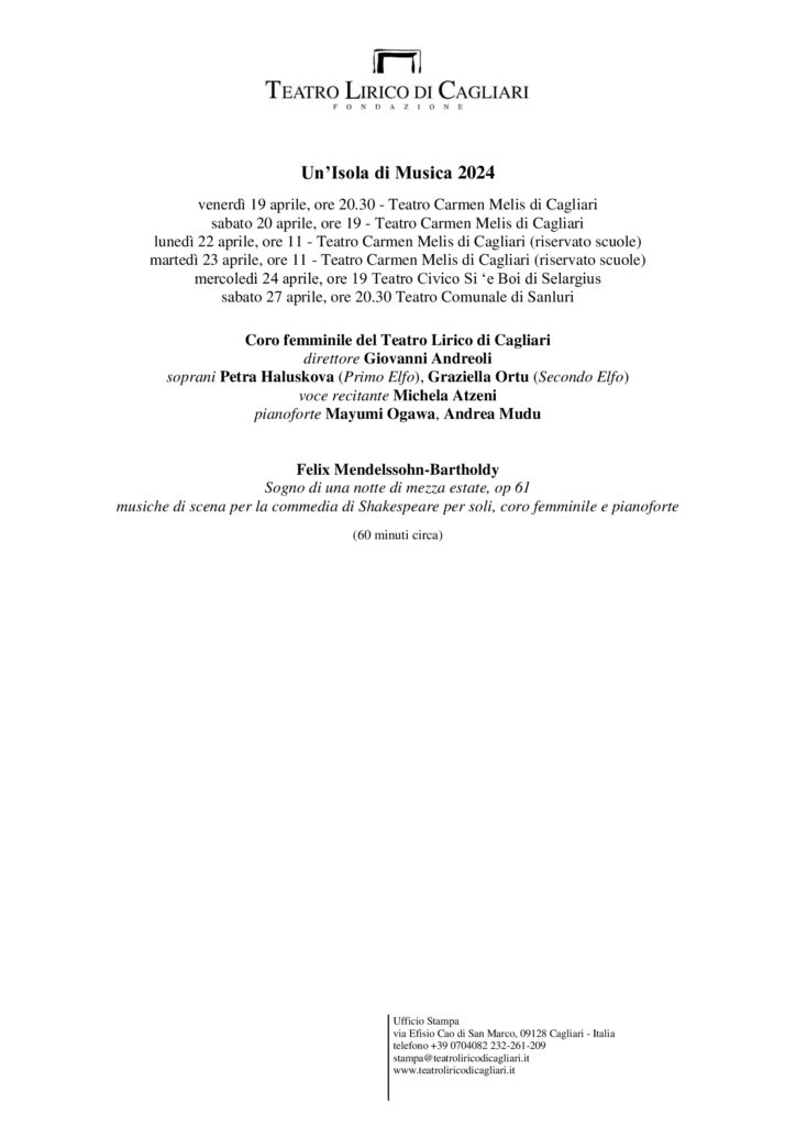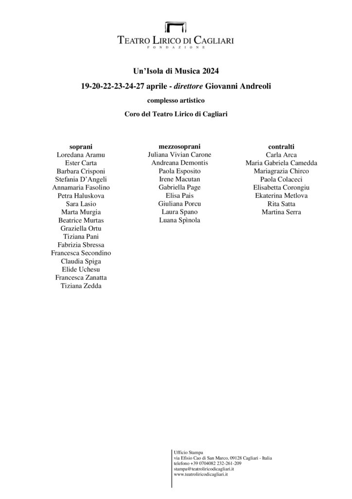 Teatro Lirico di Cagliari, via Efisio Cao di San Marco, 09128 Cagliari – Italia telefono +39 0704082209 – stampa@teatroliricodicagliari.it – www.teatroliricodicagliari.it