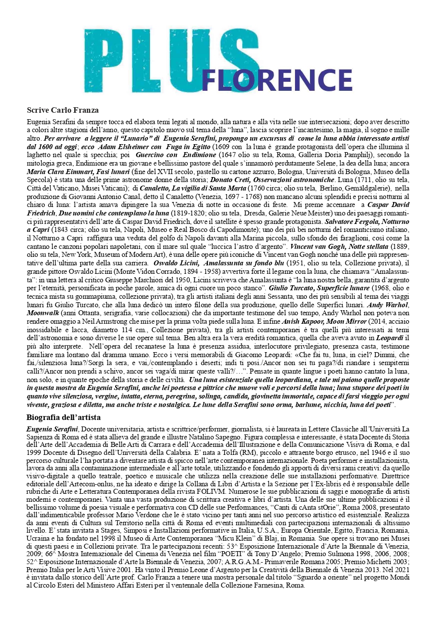 A FIRENZE “LUNARIO”, PERSONALE DI EUGENIA SERAFINI A CURA DEL PROF. CARLO FRANZA