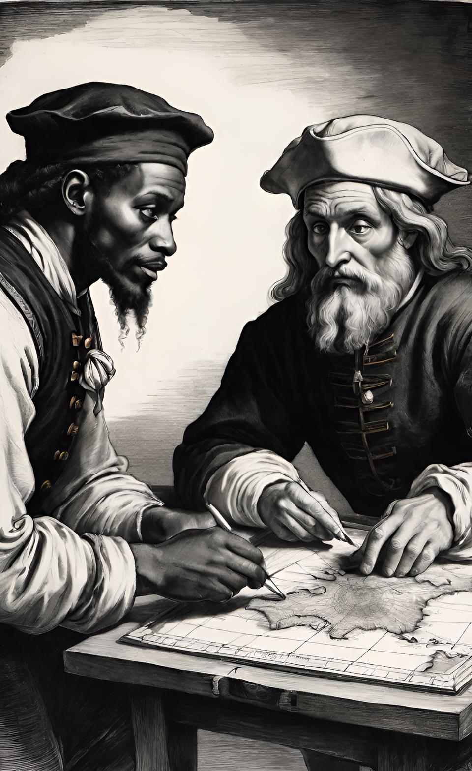 Antonio y Beniamino forjaron juntos los eslabones de una amistad intensa pero no expresada. El italiano tenía la duda sobre sus espaldas de conferir el público reconocimiento a la amistad con un infiel de tierras desconocida para la mayoría de los europeos. Con el correr de los meses formaron una unidad en la cual cada uno era epígono del otro, seres complementarios que generaban ideas nunca vistas en las artes de la marinería y del trazado de cartas. La unión de las ciencias del italiano con el conocimiento del africano dio por resultado mapas que causaron la admiración de los navegantes y también la envidia de cartógrafos incompetentes.