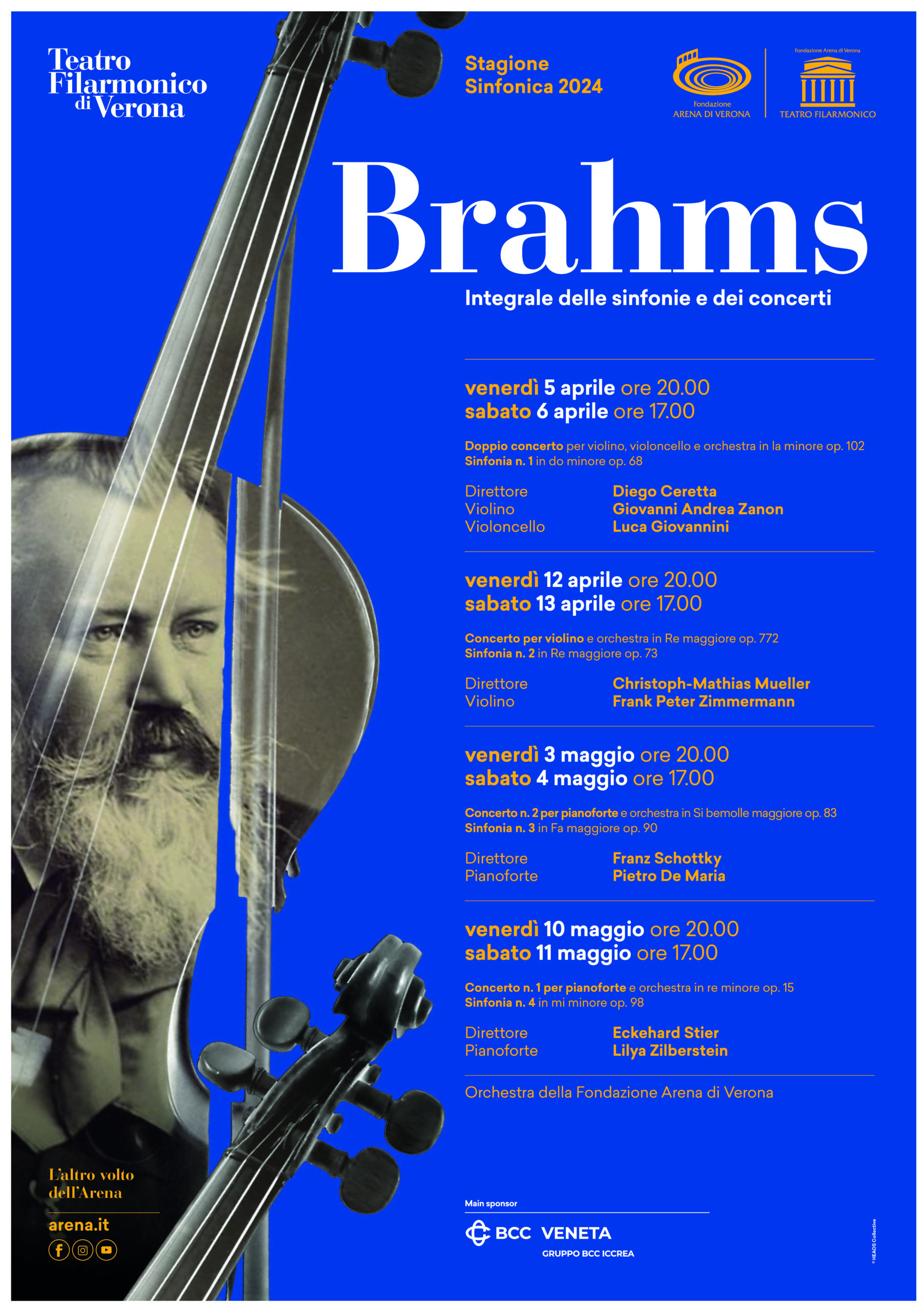 Il concerto (il 6° della Stagione Sinfonica 2024) ha una durata di 85 minuti circa più intervallo. Biglietti da 10 a 26 euro, con tariffe speciali under30, abbonamenti e carnet disponibili al link www.arena.it/it/teatro-filarmonico, alla Biglietteria dell’Arena e, due ore prima di ogni concerto, alla Biglietteria del Filarmonico in via Mutilati.