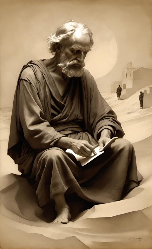 El anciano le muestra un texto casi derruido que muestra figuras geométricas y axiomas. Matteo queda azorado y un cosquilleo le recorre la espalda. Es, probablemente, la más antigua copia de los Elementos que existe en la tierra.
