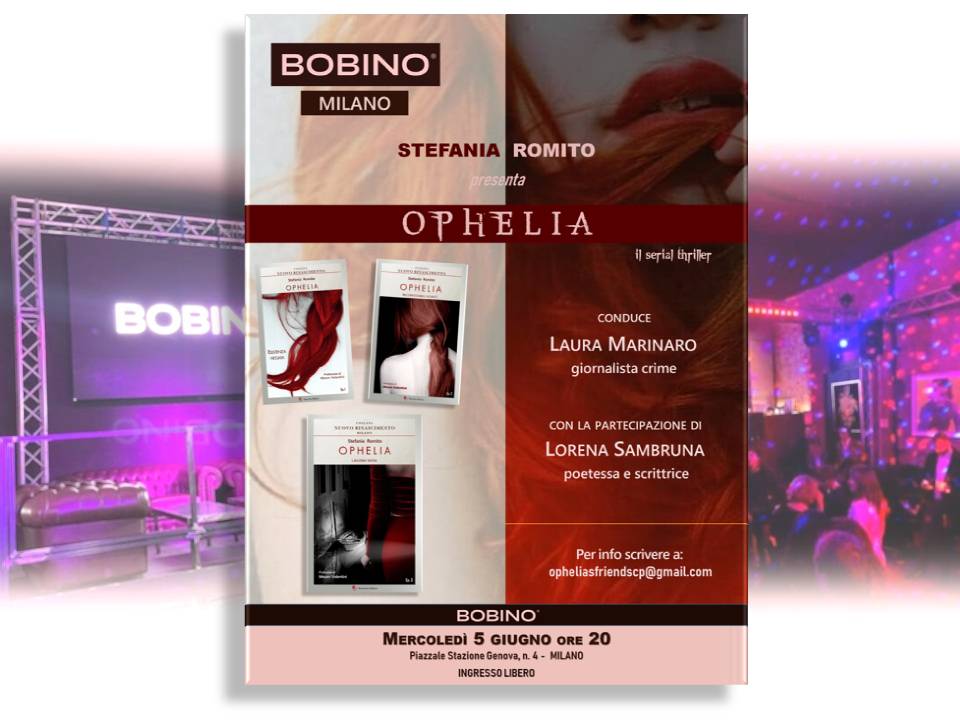Mercoledì 5 giugno 2024, alle ore 20, presso il Bobino a Milano, piazzale Stazione Genova n. 4, la scrittrice Stefania Romito presenta il serial thriller Ophelia in occasione dell’uscita del terzo episodio Laguna nera pubblicato nella Collana del Nuovo Rinascimento Milano – Passerino Editore, con Prefazione di Mauro Valentini e Nota di lettura a cura di Lorena Sambruna.