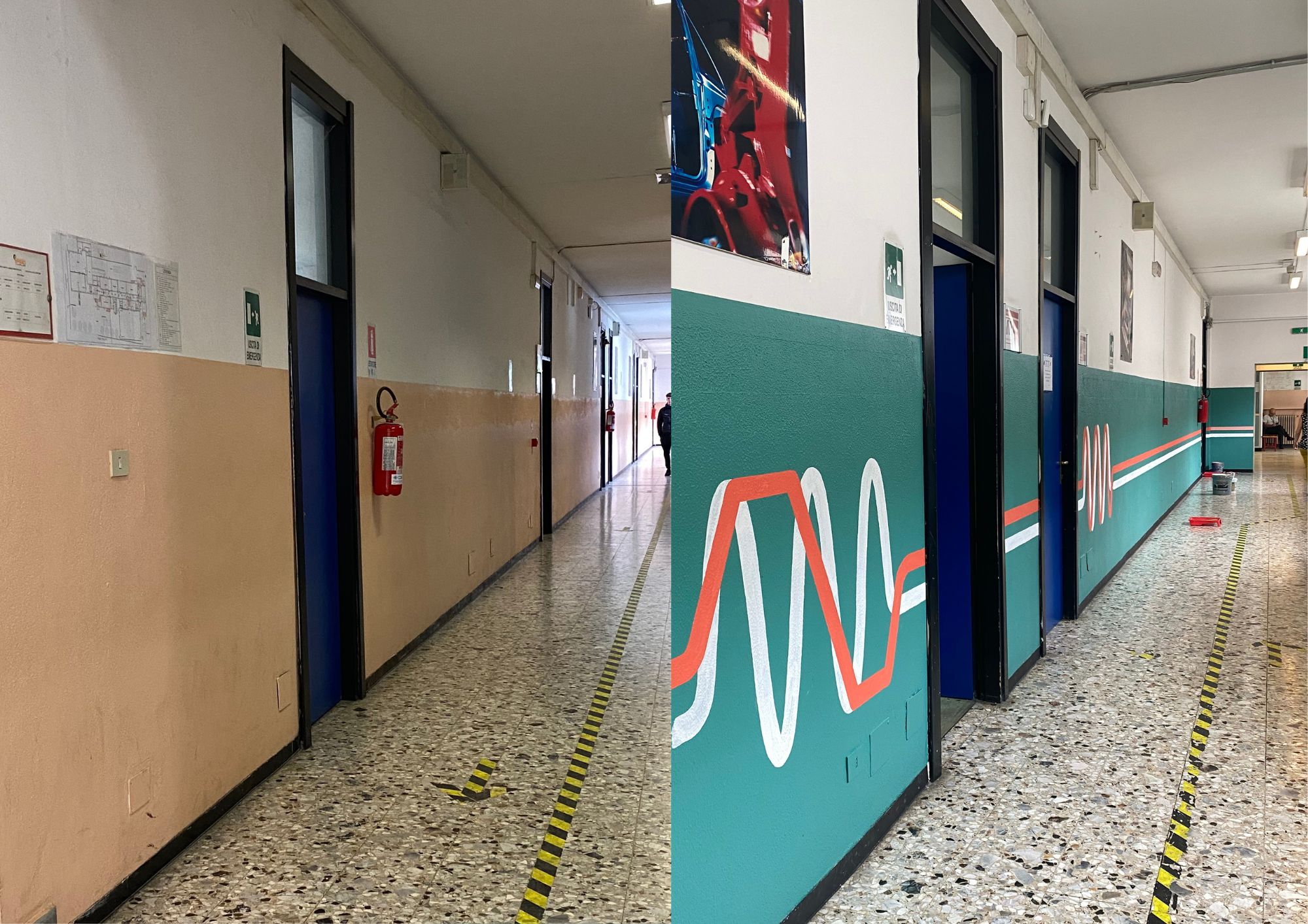 Nel mese di giugno, infatti, gli studenti delle classi dalla prima alla quarta degli indirizzi professionali, supervisionati e aiutati dai docenti Caffaro, Gandolfo, Infurna e Occhipinti – responsabili dell’iniziativa – sono stati coinvolti in attività di restauro, pulizia, pittura e decorazione murale degli spazi comuni al piano terra e dei laboratori di meccanica e impianti elettrici del plesso di Via Lavagna.
