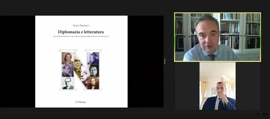 L’ambasciatore Trichilo ha ripercorso brevemente le storie e le esperienze letterarie degli otto diplomatici che hanno vinto il Premio Nobel per la Letteratura. Si tratta di Gabriela Mistral (1945), Alexis Léger, alias Saint John Perse (1960), Ivo Andrić (1961), Yorgos Seferis (1963), Miguel Angel Asturias (1967), Pablo Neruda (1971), Czesław Miłosz (1980) e Octavio Paz (1990). Nel corso del successivo dibattito è emerso come le biografie di tutti gli otto diplomatici scrittori siano di grande interesse per la ricchezza delle loro esperienze e dei contributi da essi forniti in ambito politico, sociale e culturale.