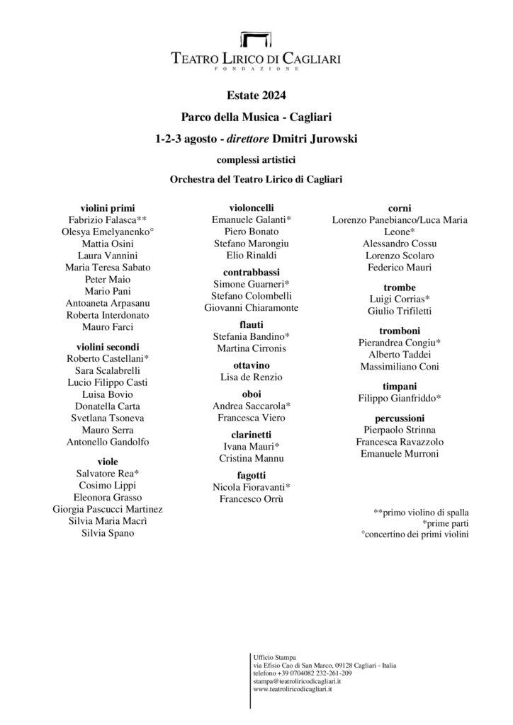 telefono +39 0704082209 – stampa@teatroliricodicagliari.it – www.teatroliricodicagliari.it