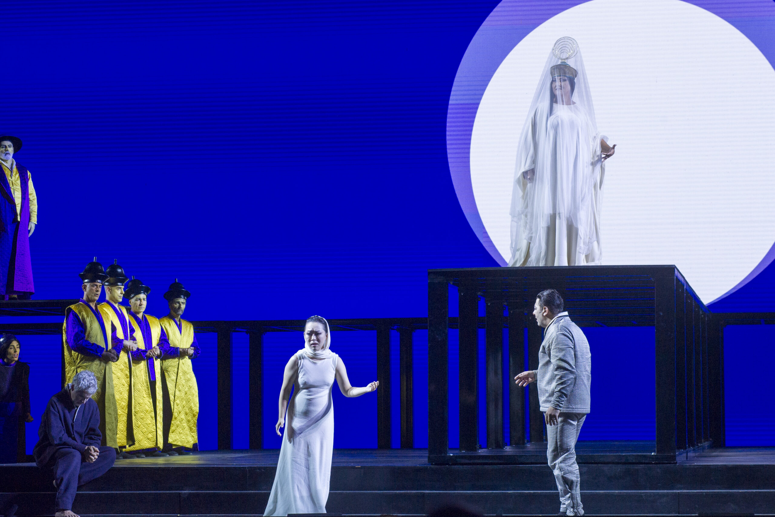 Sul podio fa il suo debutto a Torre del Lago Renato Palumbo mentre ritorna nei panni di Calaf Amadi Lagha
