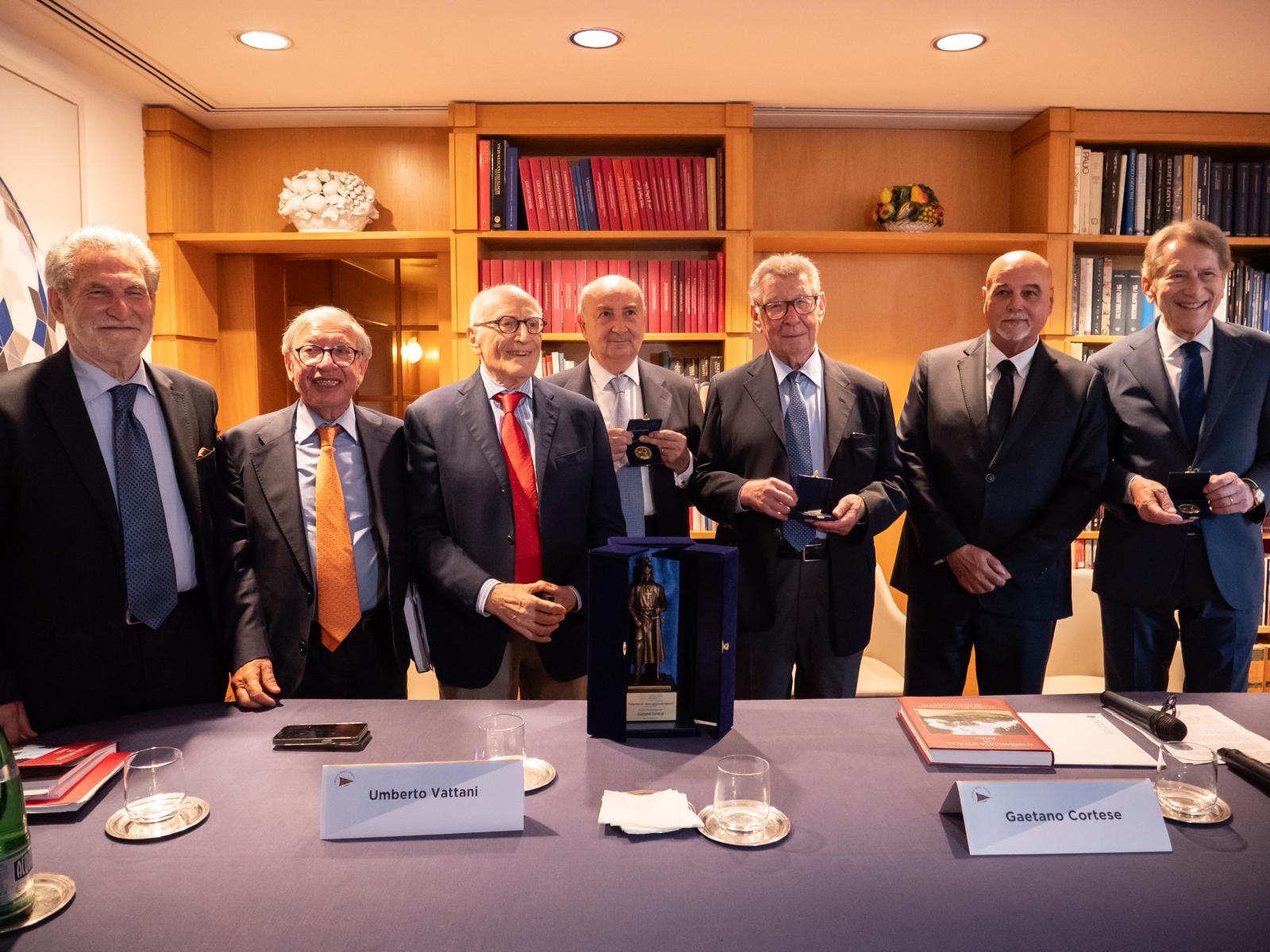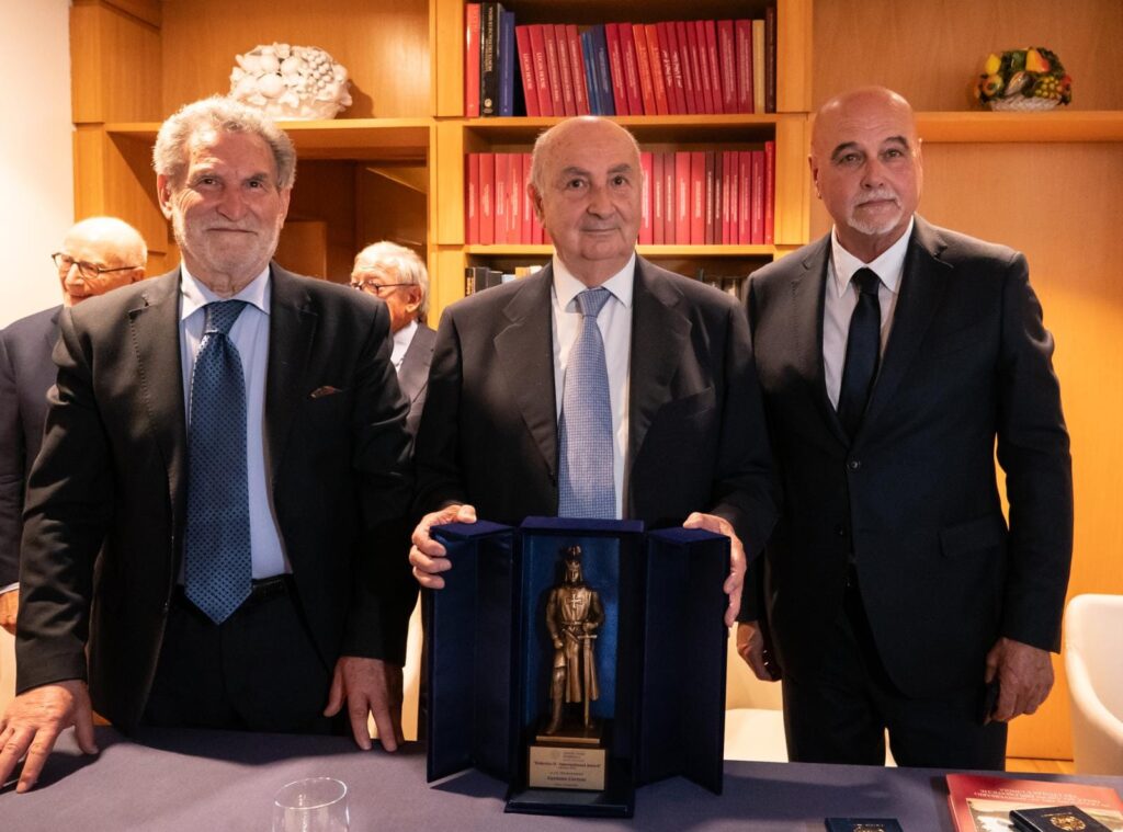 Al termine della presentazione il Presidente del Centro Studi Federico II, Giuseppe Di Franco, ha consegnato all’Ambasciatore Gaetano Cortese il Premio “Federico II International Award – Stupor Mundi” edizione 2024 a motivo della straordinaria e meritoria sua opera, che data dall’anno 1999, di redazione e pubblicazione dei preziosi volumi dove si documentano le meraviglie dell’arte e le architetture delle residenze degli ambasciatori e delle sedi diplomatiche d’Italia nel mondo, unitamente alla storia delle relazioni con i Paesi che le ospitano. Presente alla consegna anche il giornalista scrittore Goffredo Palmerini, presidente del Comitato scientifico del Centro Studi Federico II.