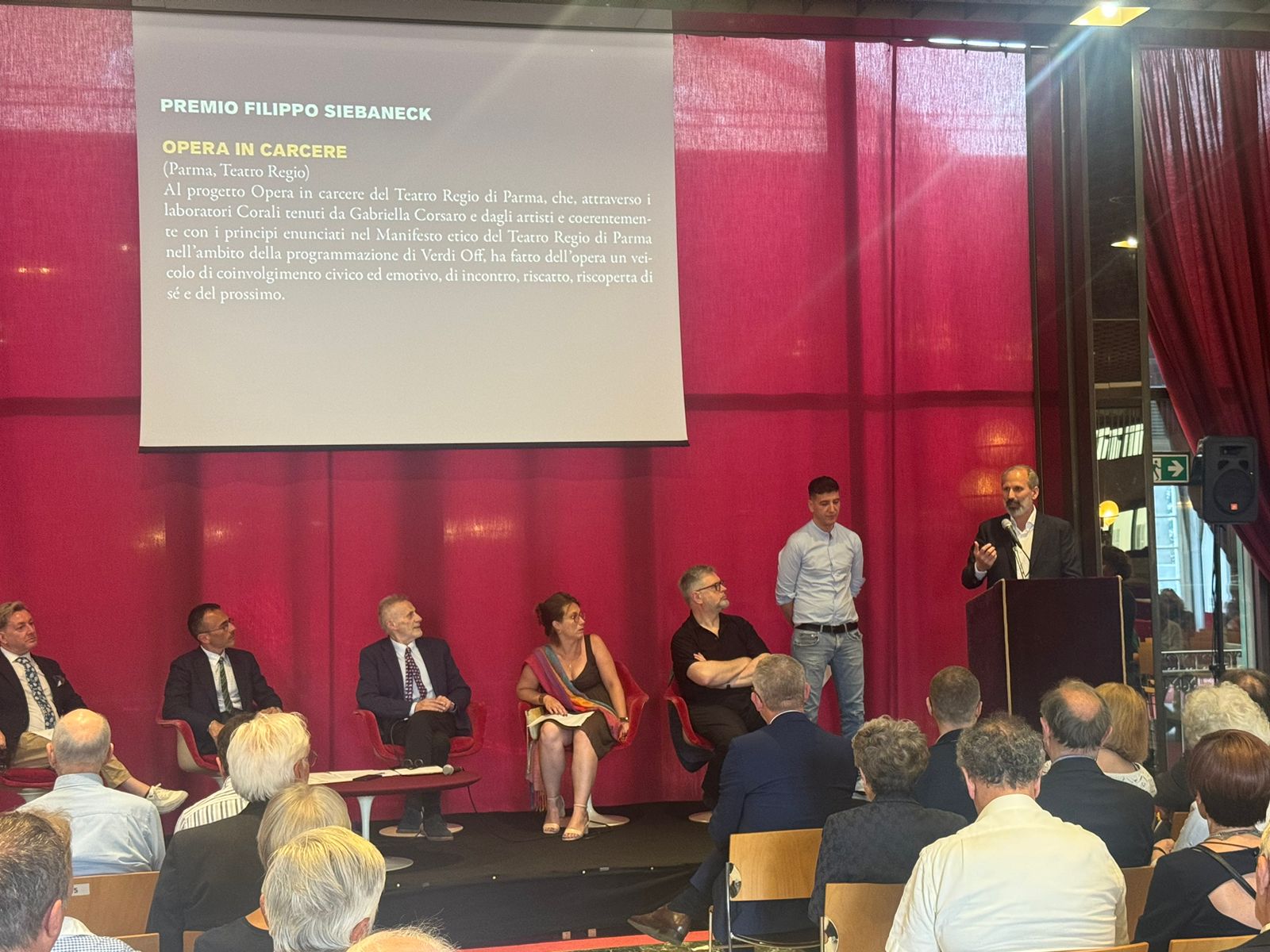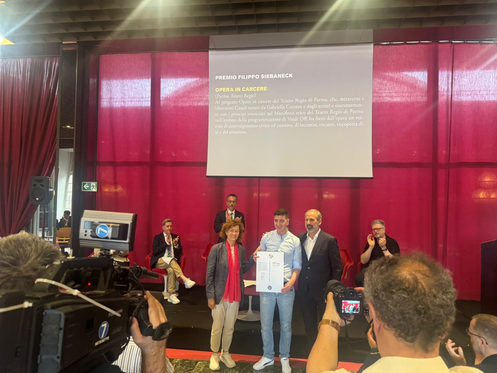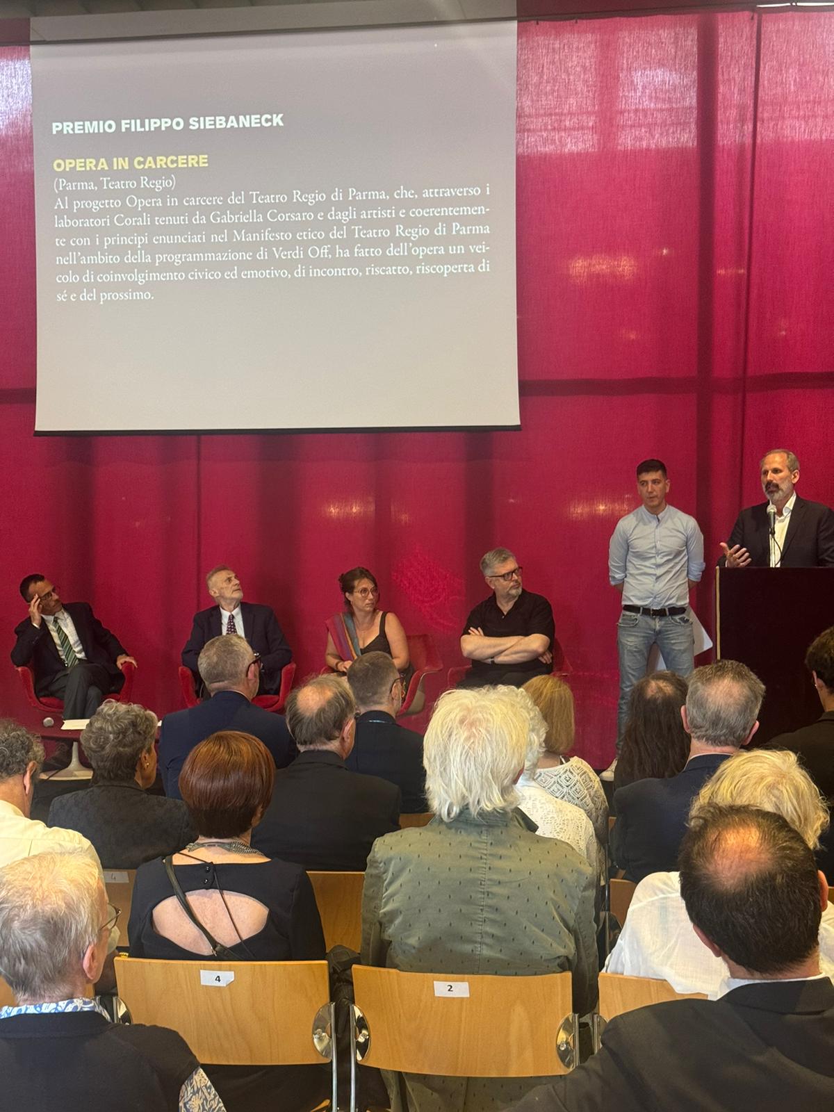 Queste le motivazioni del prestigioso Premio “Filippo Siebaneck” del 43° Premio Abbiati assegnato dall’Associazione Nazionale Critici Musicali al progetto Opera in carcere del Teatro Regio di Parma che è stato consegnato quest’oggi in un’emozionante cerimonia tenutasi nel Foyer del Teatro Regio di Torino.