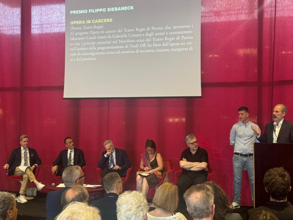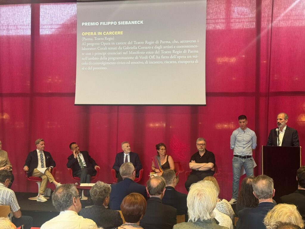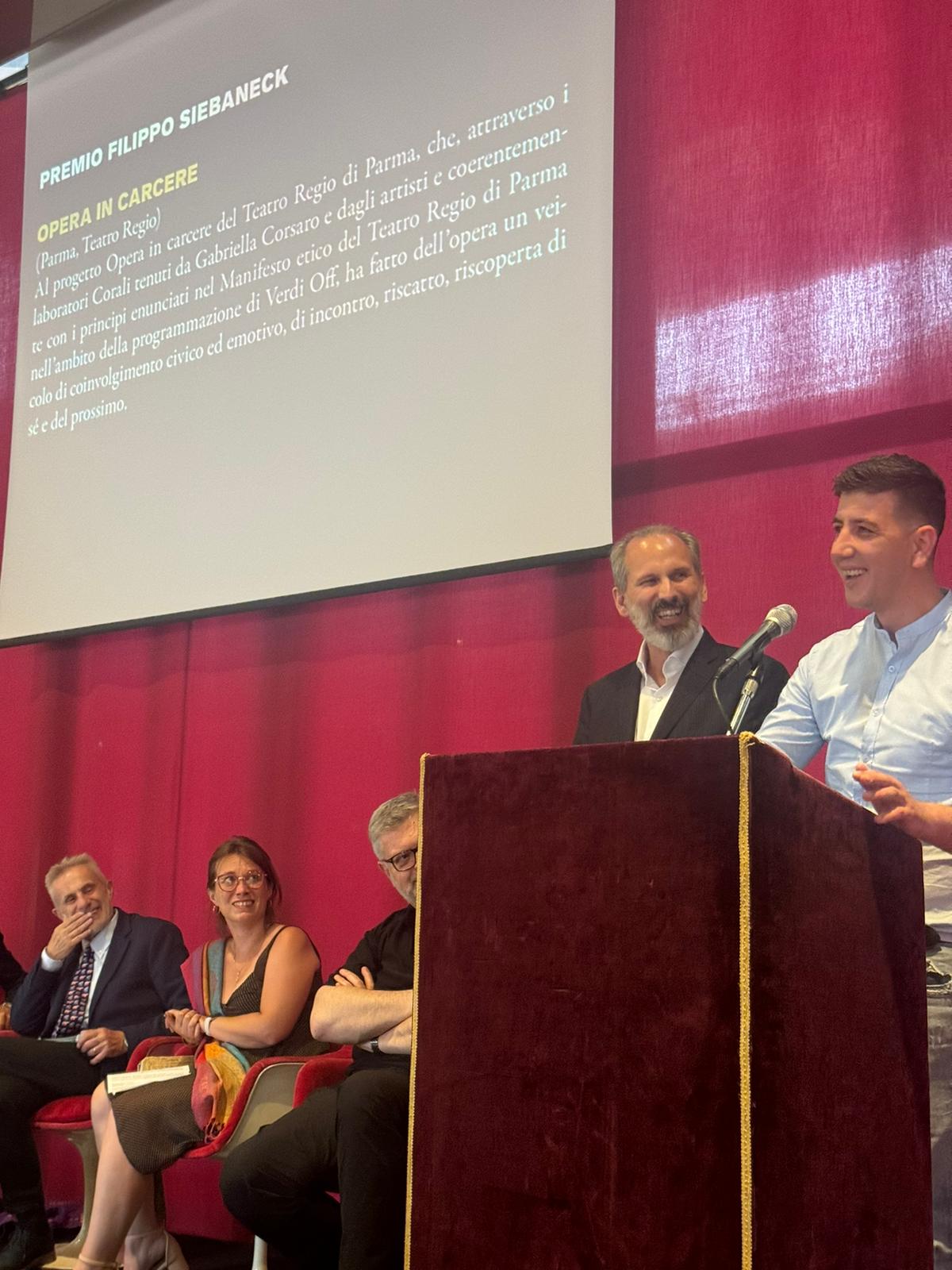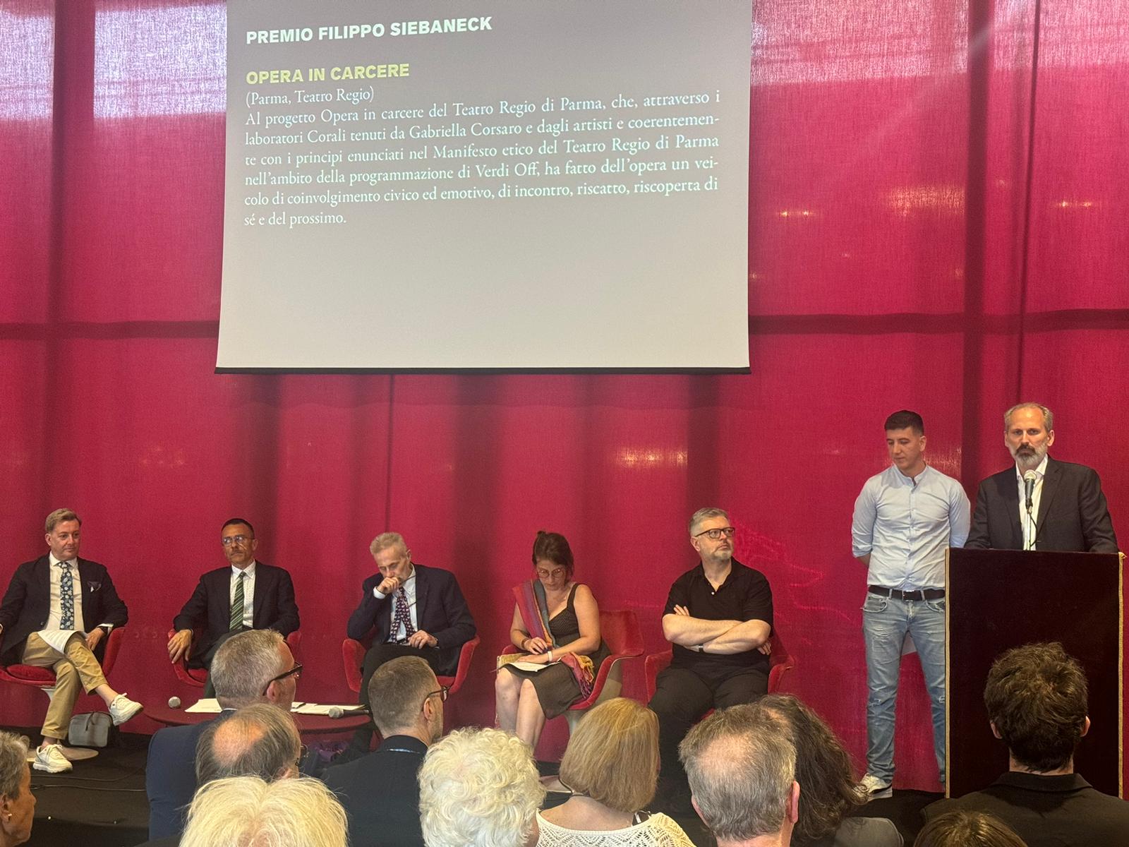 Queste le motivazioni del prestigioso Premio “Filippo Siebaneck” del 43° Premio Abbiati assegnato dall’Associazione Nazionale Critici Musicali al progetto Opera in carcere del Teatro Regio di Parma che è stato consegnato quest’oggi in un’emozionante cerimonia tenutasi nel Foyer del Teatro Regio di Torino.
