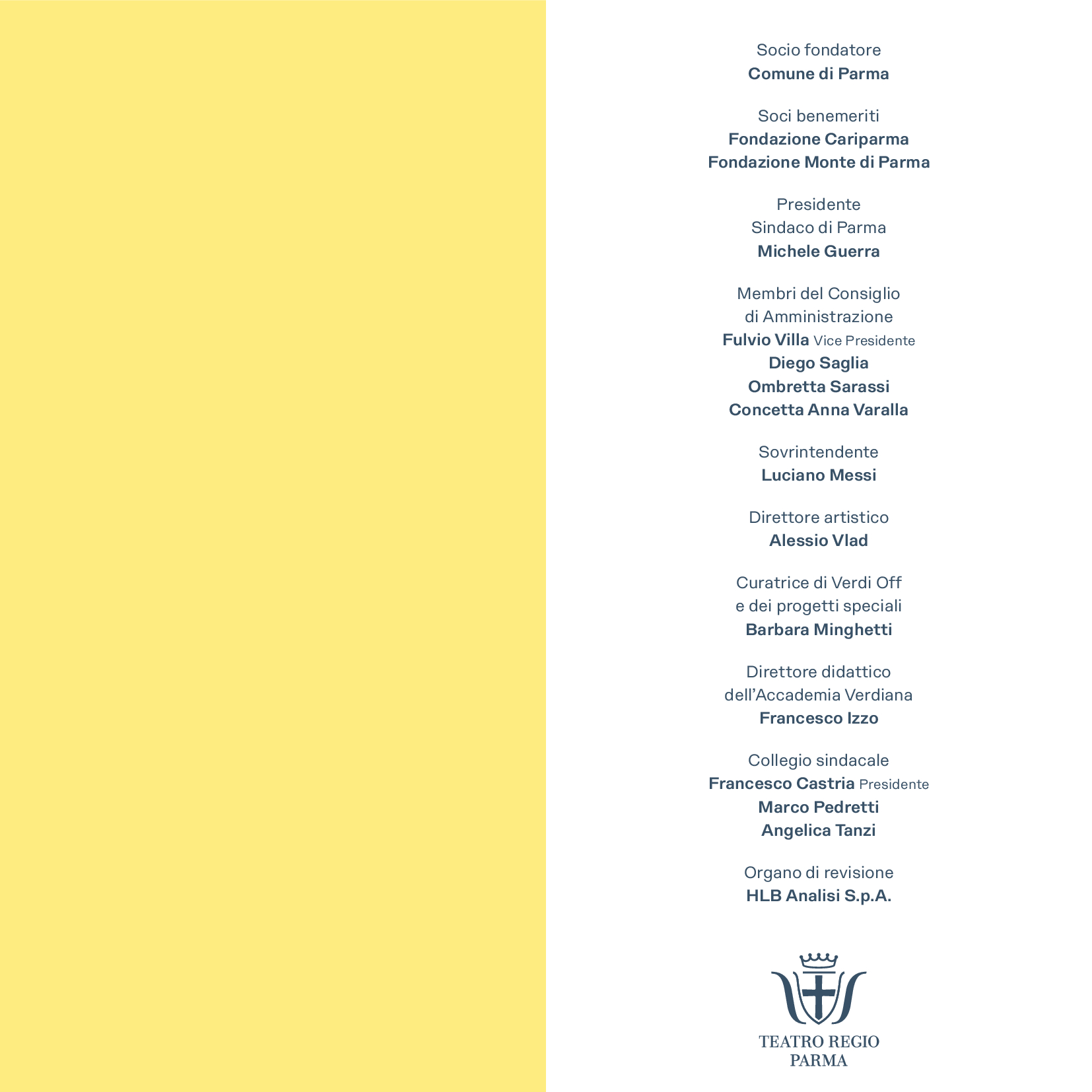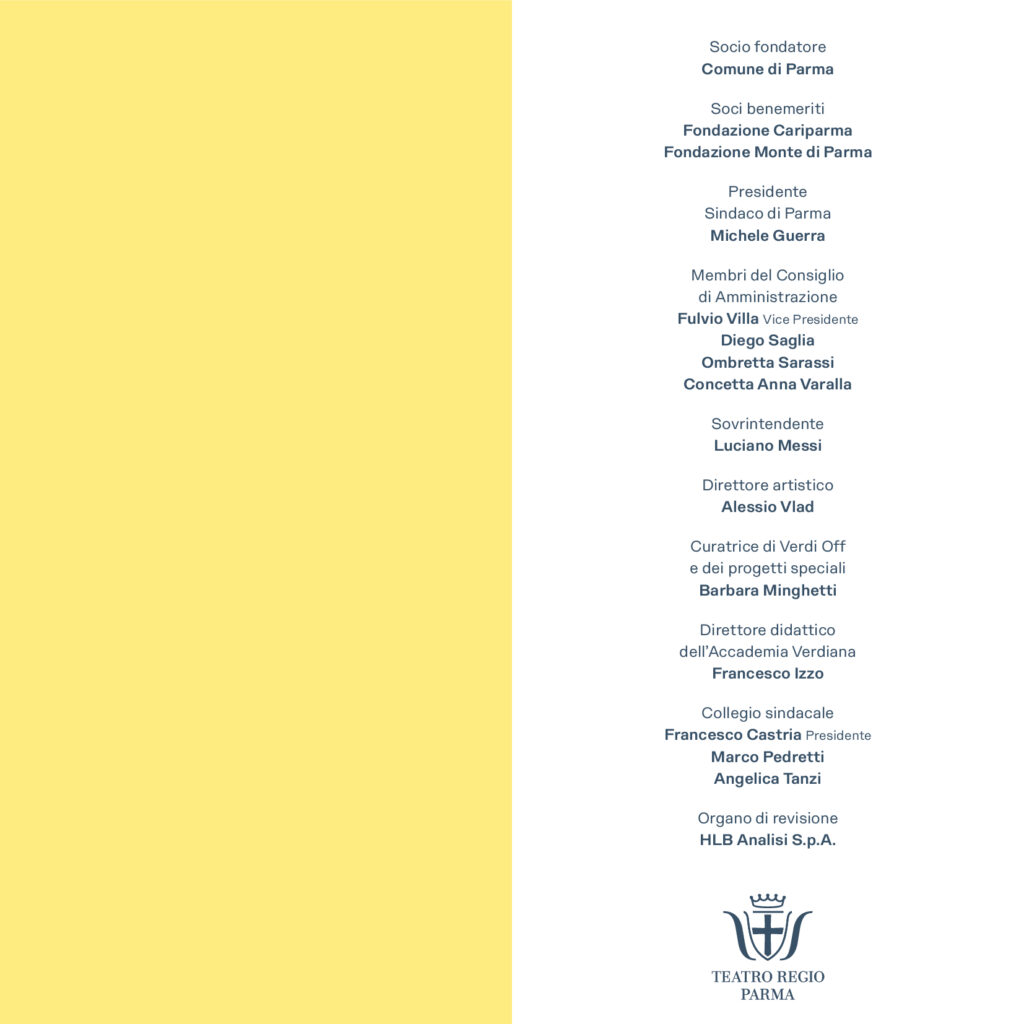 Nel corso della Stagione 2025, promuovendo la valorizzazione dei talenti emergenti, i giovani artisti allievi ed ex allievi dell’Accademia Verdiana saranno tra i protagonisti delle attività in programma nell’ambito della Stagione Lirica. L’Accademia Verdiana del Teatro Regio di Parma, Corso di Alto Perfezionamento in repertorio verdiano, è il percorso formativo d’eccellenza gratuito e rivolto ogni anno a 12 giovani cantanti lirici, che ha l’obiettivo di formare artisti lirici di alto profilo, offrendo loro unapreparazione vocale, teatrale e musicale sotto la guida di alcuni tra i massimi interpreti verdiani del mondo, vocal coach, pianisti, direttori e professionisti del settore. Tra i docenti si segnalano Francesco Bellotto, Silvia Dalla Benetta, Vincenzo De Vivo, Martino Faggiani, Barbara Frittoli, Damiana Pinti, Sebastiano Rolli, Riccardo Zanellato. Direttore didattico dell’Accademia Verdiana è Francesco Izzo, musicologo, pianista e coach, professore ordinario di musicologia presso l’Università di Southampton nel Regno Unito e specializzato nello studio del melodramma ottocentesco.