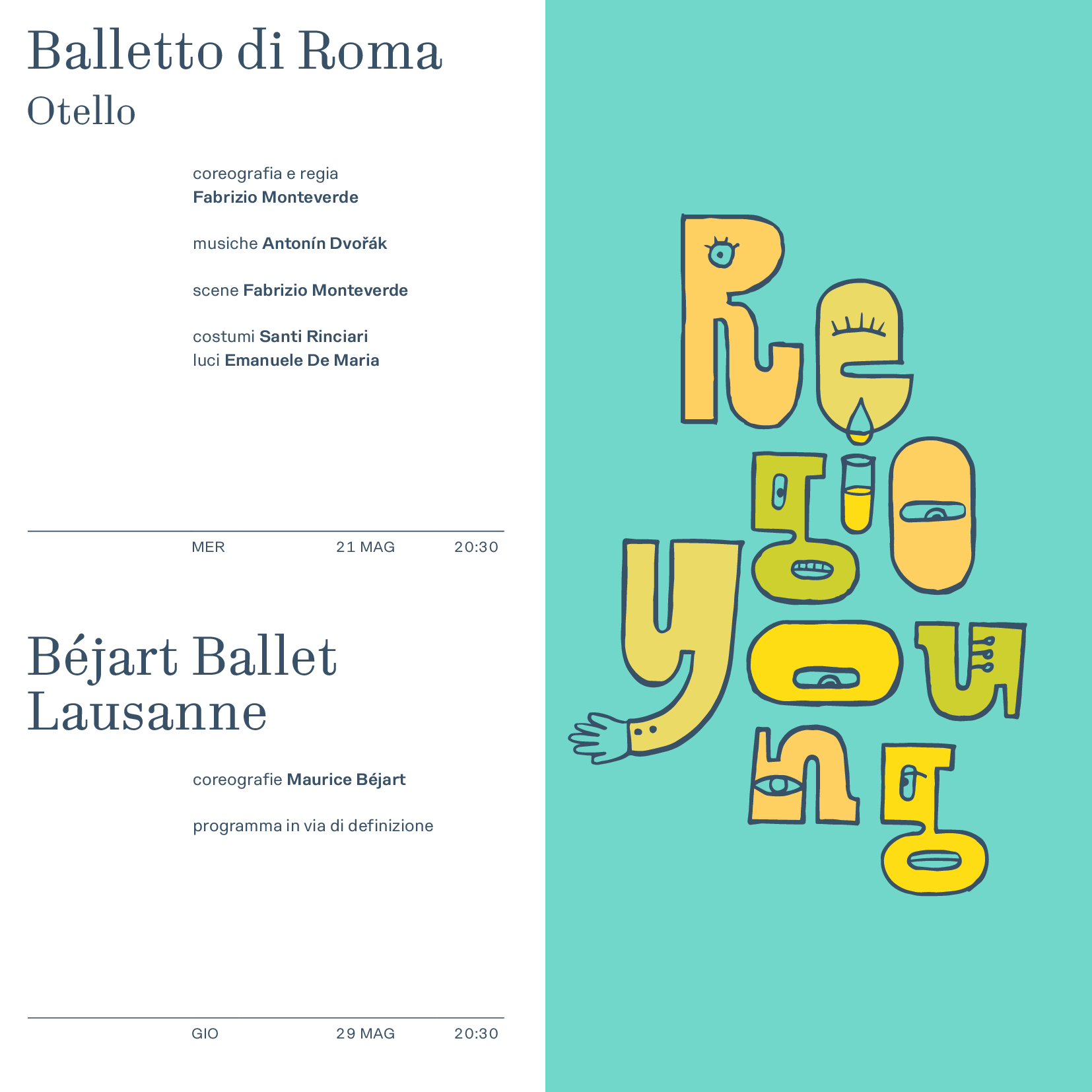 “Da qui il progetto di un brand system grazie al quale abbiamo sviluppato un nuovo stile visivo. Al cuore del progetto si mette in scena quella che abbiamo chiamato ‘tipografia di scena’, composizione di tipografia espressiva e fotografia che ci mette in grado di caratterizzare i diversi cartelloni e le singole produzioni del Teatro con grande espressività”.