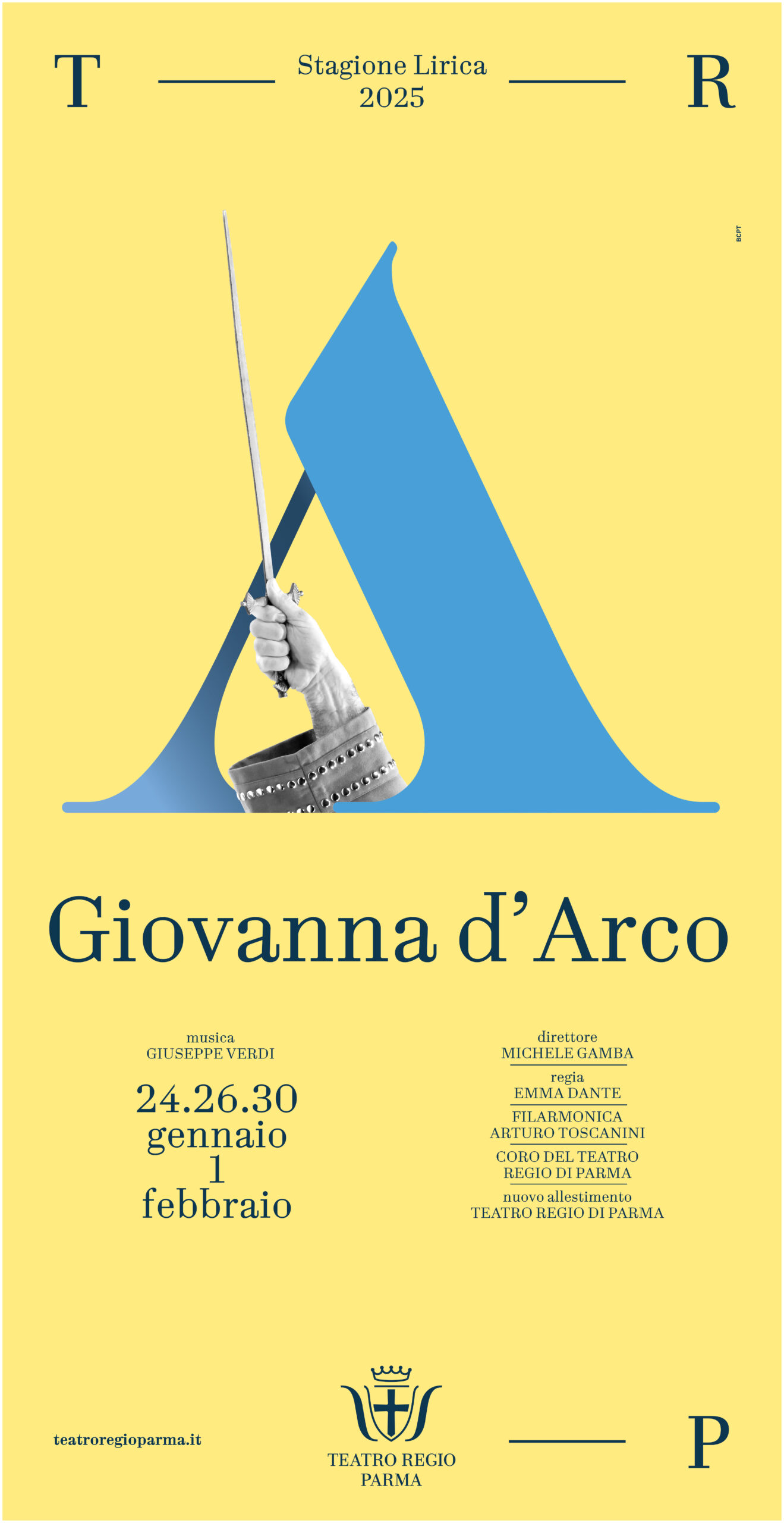 La Stagione Lirica inaugura nel nome di Giuseppe Verdi con Giovanna d’Arco, dramma lirico in tre atti su libretto di Temistocle Solera da Die Jungfrau von Orléans di Friedrich Schiller che debutta venerdì 24 gennaio ore 20.00 (recite domenica 26 ore 15.30, giovedì 30 e sabato 1 febbraio, ore 20.00). Per la prima volta al Teatro Regio di Parma Emma Dante firma la regia di questo nuovo allestimento con le scene diCarmine Maringola,i costumi diVanessa Sannino, le luci di Luigi Biondi, lecoreografiediManuela Lo Sicco. Michele Gamba, al suo debutto al Teatro Regio, dirige per la prima volta l’opera, che è eseguita nell’edizione critica a cura di Alberto Rizzuti, sul podio della Filarmonica Arturo Toscanini e del Coro del Teatro Regio di Parma preparato da Martino Faggiani.Protagonisti Luciano Ganci (Carlo VII), Nino Machaidze (Giovanna), George Petean (Giacomo) Krzysztof Bączyk (Talbot, al debutto nel ruolo).