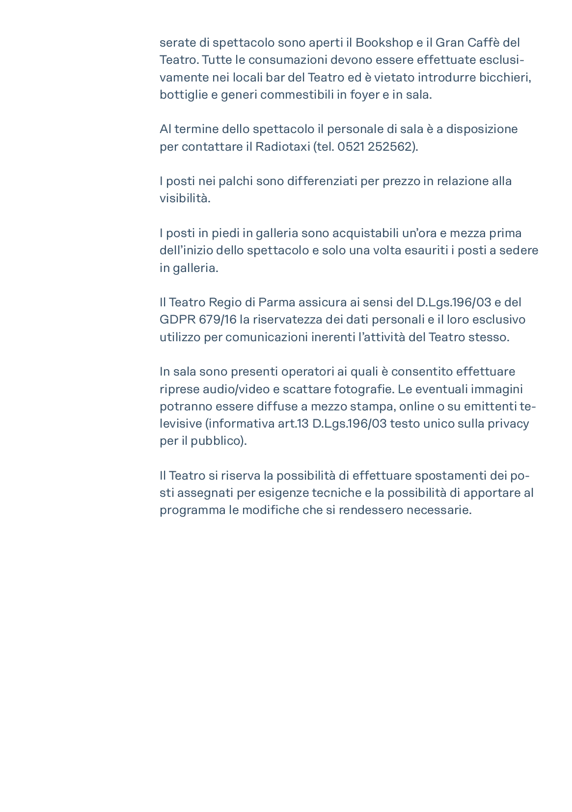 Strada Giuseppe Garibaldi, 16/A 43121 Parma Tel. +39 0521 203999 biglietteria@teatroregioparma.it