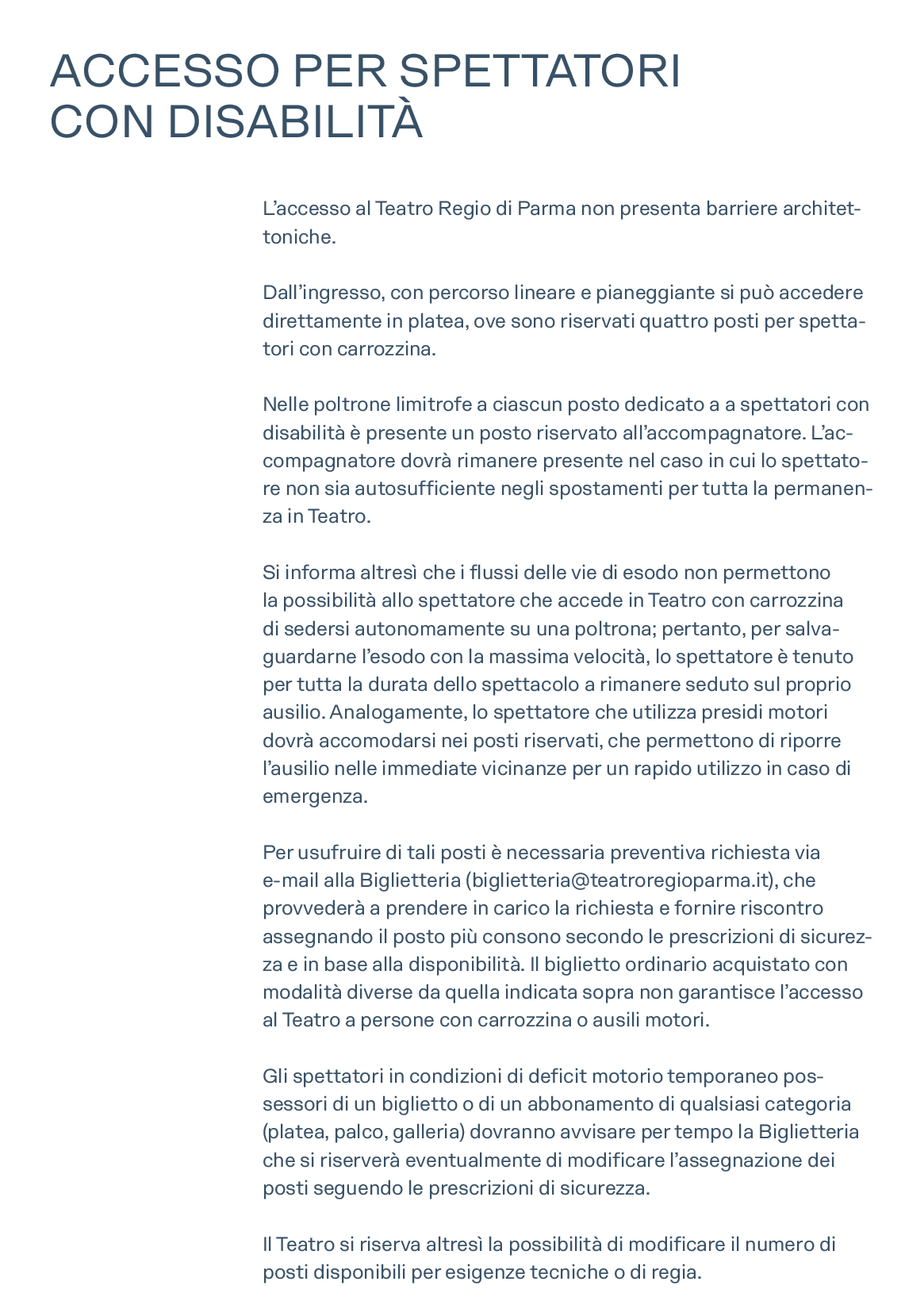 BIGLIETTERIA DEL TEATRO REGIO DI PARMA