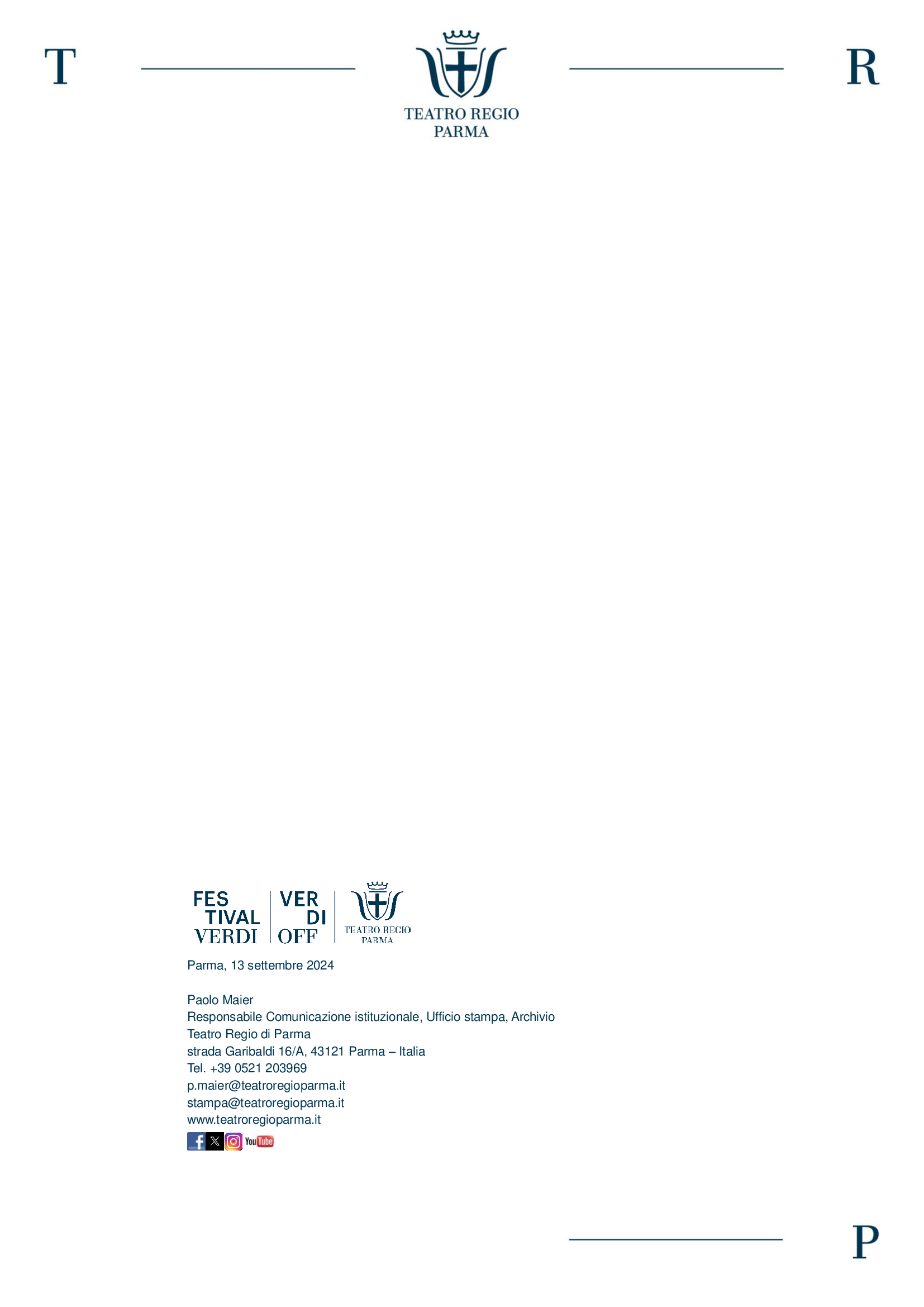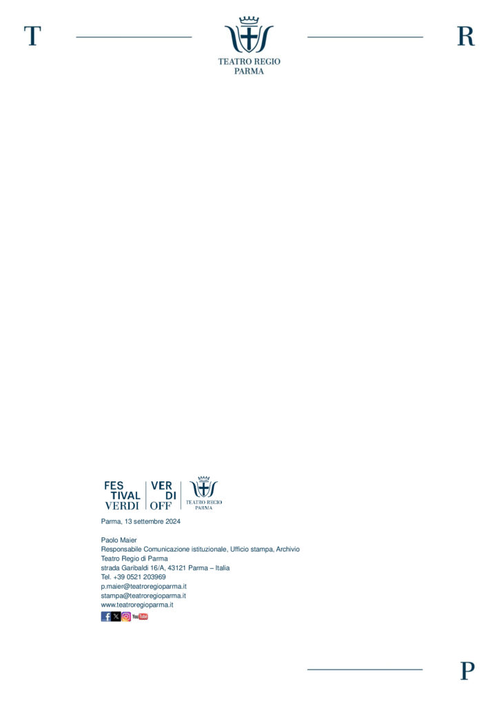 Il Festival rilancia l’impegno del Manifesto Etico del Teatro Regio di Parma, candidato agli International Opera Awards 2024 nella categoria Equal Opportunities & Impact, che coinvolgerà gli artisti di questa nuova edizione.