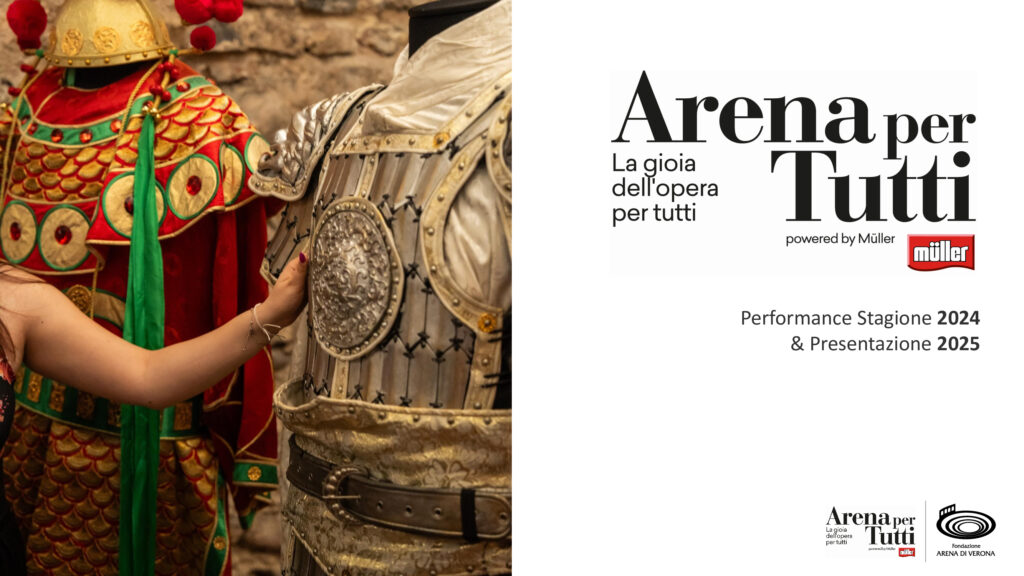 «Gli straordinari risultati che ha raggiunto quest’anno il progetto Arena per Tutti dimostrano ancora una volta quanto sia importante rendere l’opera un’esperienza accessibile e inclusiva per ogni spettatore – dichiara Paola Scandola, Direttore Marketing di Müller Italia. – La crescente partecipazione del pubblico ha evidenziato il valore di abbattere le barriere per permettere a tutti di vivere la bellezza dell’opera lirica. Ringraziamo la Fondazione Arena di Verona per averci dato l’opportunità di sostenere questa iniziativa, che rappresenta un esempio concreto di inclusività e cultura aperta a tutti».