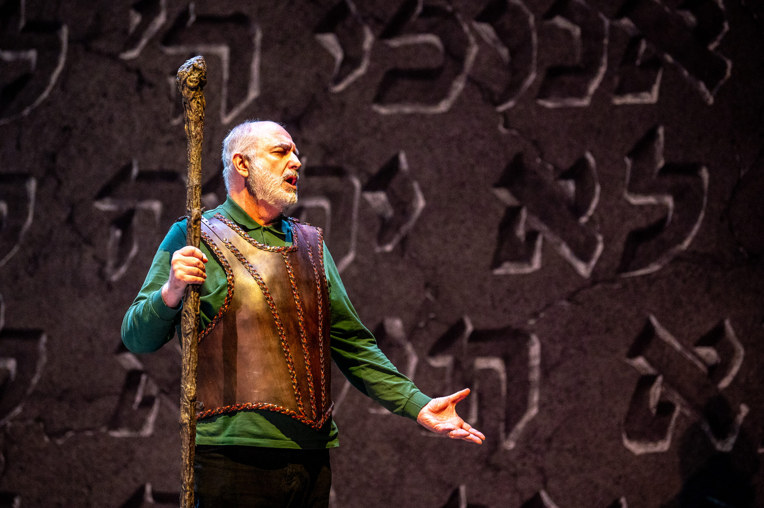 due immagini delle prove dell’opera con il protagonista Michele Pertusi