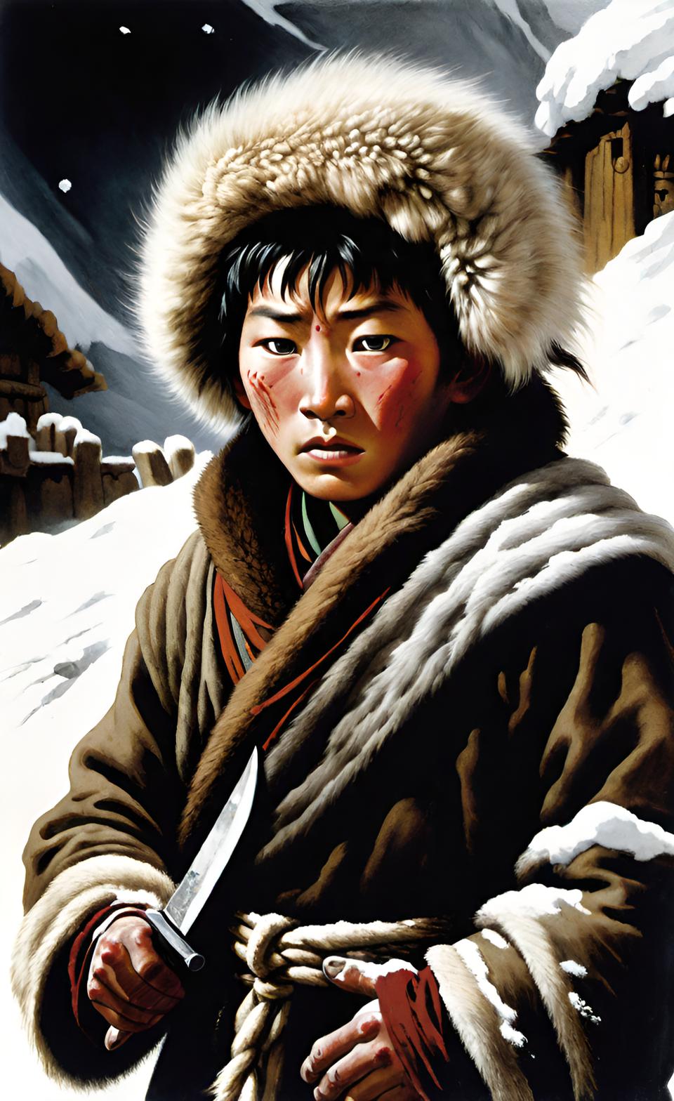 El reflejo del fuego emerge desde la pequeña ventana de la casucha y se queda en el medio de la nieve mirando con los ojos fijos en un punto más allá de la casa. Sabe que en algún momento empezarán a gritar y arrojar cosas. En una oportunidad—no puede borrar la imagen de su cabeza— una de esas trifulcas se tornó tan violenta que los tres hombres comenzaron a perseguir a su madre. Oculto desde el establo vio su desnudez, los pechos sueltos moviéndose y los rufianes que se turnaban para hacerle algo entre las piernas mientras su madre gritaba desesperadamente. A menudo sueña con eso y no puede dormir. Sabe que esta mismísima noche, si es necesario, todo acabará para siempre. El monasterio lo espera y ya lo ha decidido. Mientras vuelve en sí de sus pensamientos pasa su pequeño pulgar por el filo del cuchillo oculto bajo su ropa.
