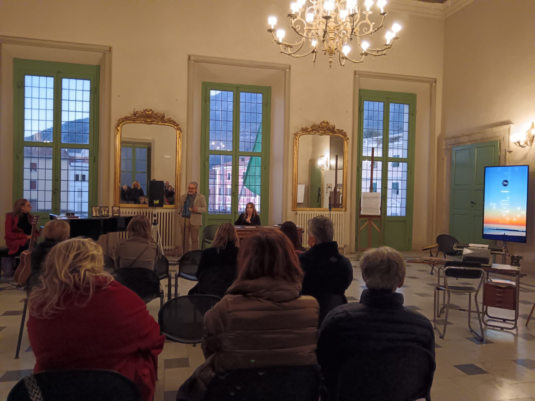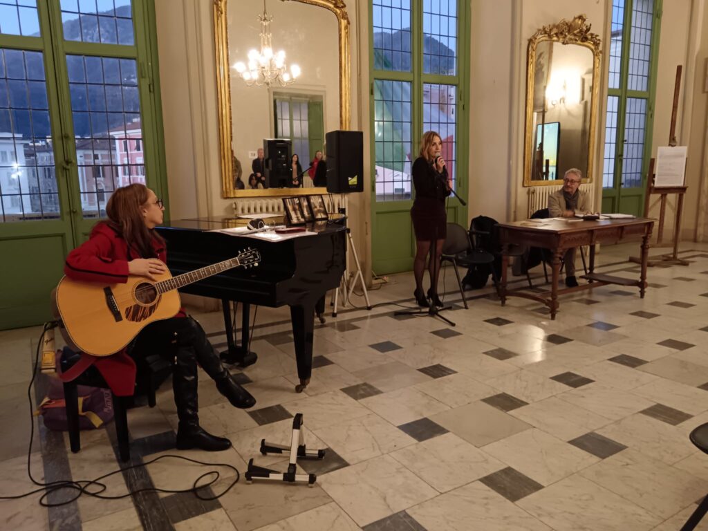 Protagonisti sono quattro artisti con le loro arti che si sono incontrati per regalare al pubblico e ai lettori un evento unico nel suo genere. Per le “Parole” abbiamo Silvia Brugiamolini, per le “Immagini” Riccardo Tazzini, e per la “Voce” Stefania Depeppe e Francesco Demarco, doppiatori. Non solo una mostra ma un percorso emozionale con tanto di postazioni video e cuffia con la quale ascoltare le parole e la musica, immergendosi in un’atmosfera suggestiva, emozionante e multisensoriale. Ha introdotto Riccardo Tazzini, presentando il progetto e il fortunato incontro con la poetessa la quale, attraverso le sue parole, riesce a scavare dentro l’anima di chi legge. Poesie forti, che nascono da una evidente sofferenza ma che lasciano emergere tanta speranza e soprattutto fiducia in se stessi per poter affrontare le incognite dell’esistenza. Presente anche l’attrice di “Un posto al sole”, Chiara Conti, che ha declamato una poesia tratta dal libro Unisono. Il libro, un centinaio di pagine che regalano l’emozione dell’immagine e della poesia, è edito da Tara Editoria ed è stato inserito nella collana poesia “Rosa Canina”. Il volume si trova nelle librerie del centro città e sulle piattaforme on line, o presso Tara Editoria. La mostra a Palazzo Ducale è visitabile fino al 7 dicembre nei seguenti orari: da lunedì 2 a venerdì 6 dicembre dalle 17:00 alle 19:00; sabato 7 dicembre dalle 16:00 alle 19:30.