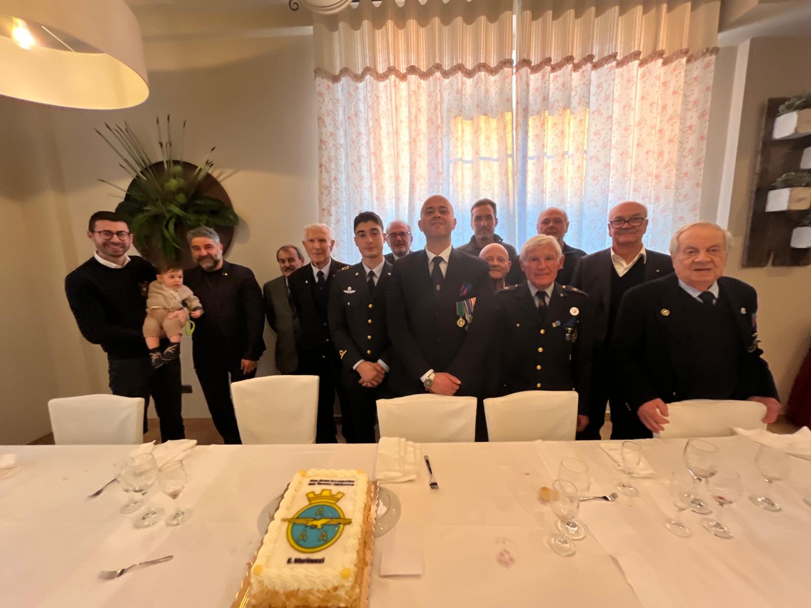 Mosciano Sant’Angelo. L’Associazione Arma Aeronautica, sezione Teramo-Giulianova “Medaglia di Bronzo al Valor Militare Ernesto Marinucci”, in una sentita e partecipata santa messa, ha onorato la Beata Vergine Lauretana (patrona degli aeronauti) nella Chiesa della Madonna degli Angeli nel Convento Santi Sette Fratelli. Dopo la liturgia del Rev.mo Sac. Vincenzino Andrenacci. Il Presidente provinciale dell’associazione, Cav. Gabriele Barcaroli, ha ringraziato tutti i soci per l’attività svolta nel corso del 2024 e salutato le autorità rappresentate dal Sindaco di Mosciano, Giuliano Galiffi e l’assessore alla Pubblica Istruzione, Katia Andrenacci; dal S.Ten GArs dell’Aeronautica Militare, Simone Pistilli e la delegazione della Protezione Civile di Mosciano. Successivamente, durante il pranzo sociale, sono state rinnovate le iscrizioni per il prossimo anno e presentate le attività per il 2025: il 28 marzo anniversario della fondazione dell’Arma Aeronautica, cerimonia per ricordare un aviere di Tortoreto internato in un lager tedesco e un viaggio al Museo Storico dell’Aeronautica Militare di Vigna di Valle (zona Lago di Bracciano). Ben 4 moscianesi perirono nell’ultimo conflitto mondiale con la divisa dell’arma azzurra: Alessandro Campeti con la 84° Sq. Caccia; Emidio Iobbi all’aeroporto di Valona; Ernesto Marinucci con il 283° Sq. Bomb. e Alfonso Toscani con 243° Sq. Bomb..