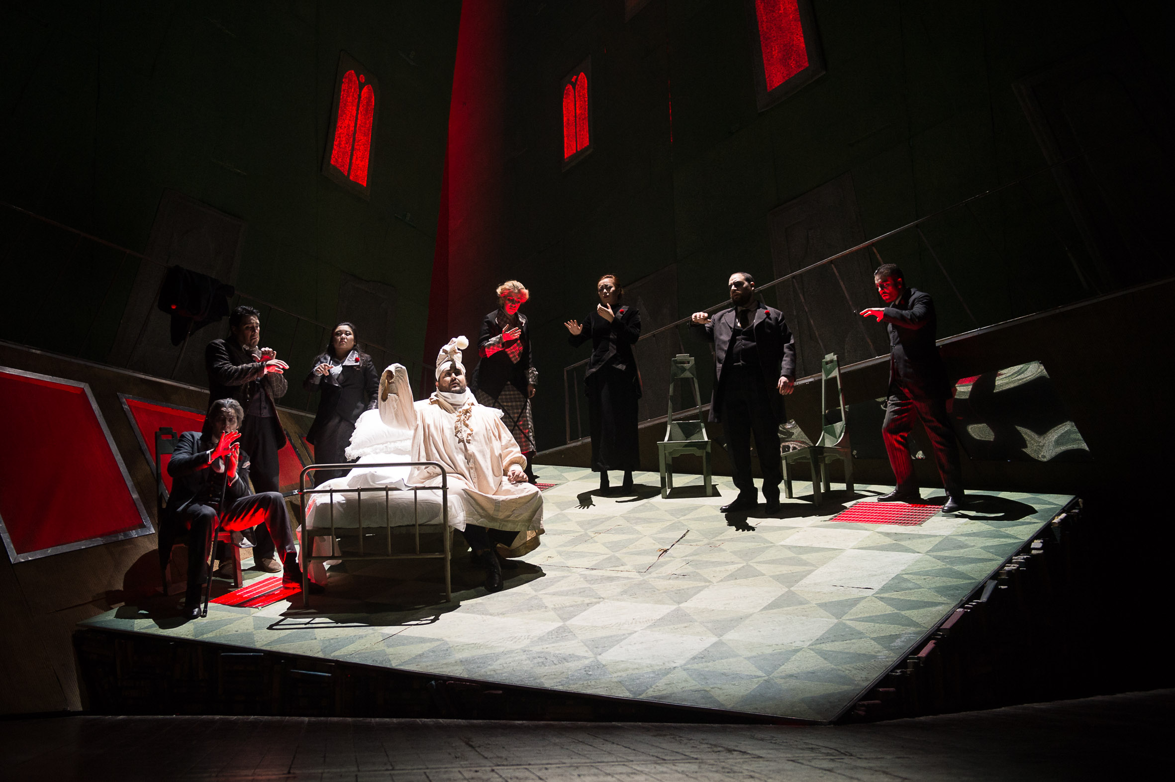 L’opera, inscritta in un trittico che contemplava per alternanza i generi del tragico, del drammatico, e del comico, rimanda con pronunciato sarcasmo al periodo della sua composizione, durante i tempi bui della Grande Guerra, in pieno espressionismo, e in questa prospettiva è stato pensato un allestimento che evoca le tinte marcate del cinema di quel periodo, da Metropolis a l’Angelo azzurro. “Forse è l’opera più spietata che io abbia mai messo in scena – racconta Stefano Monti -. Quando si immagina lo Schicchi si pensa solo alla componente comica, divertente; in realtà è anche uno spaccato di un’umanità di una spietatezza e di una avidità inaudite. L’uomo nei secoli, ahimè, non è cambiato, e quindi resta anche di un’attualità sconcertante”.