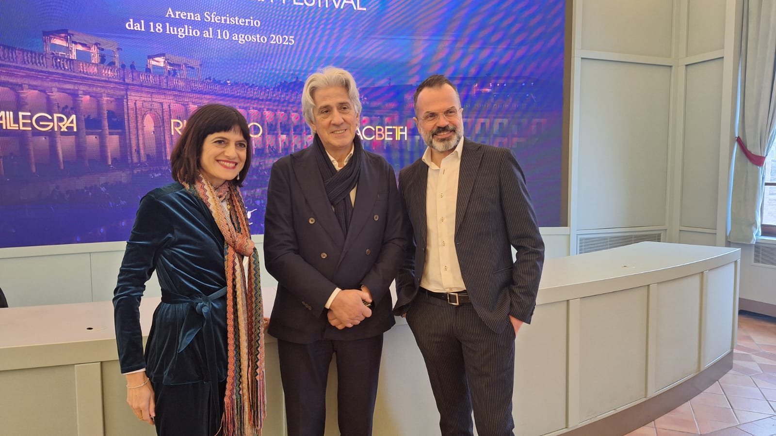 Il presidente dell’Associazione Arena Sferisterio Sandro Parcaroli ha presentato il nuovo management che guiderà l’istituzione nel prossimo triennio