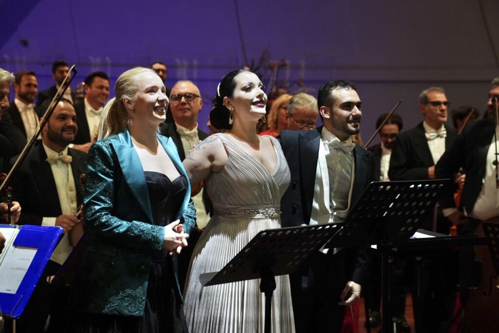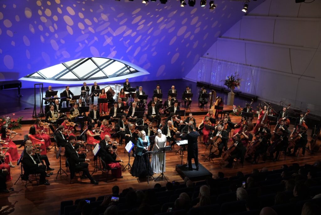 La mattinata quasi primaverile ha incoraggiato il pubblico che ha gremito l’Auditorium Oscar Niemeyer. Sul palco la Filarmonica “Giuseppe Verdi” di Salerno guidata da Leonardo Sini che ha diretto due delle voci più interessanti e ricercate del panorama operistico internazionale: il soprano Anastasia Bartoli e Vasilisa Berzhanskya, per la prima volta insieme con una selezione di celebri arie d’opera e pagine musicali associate alle festività.