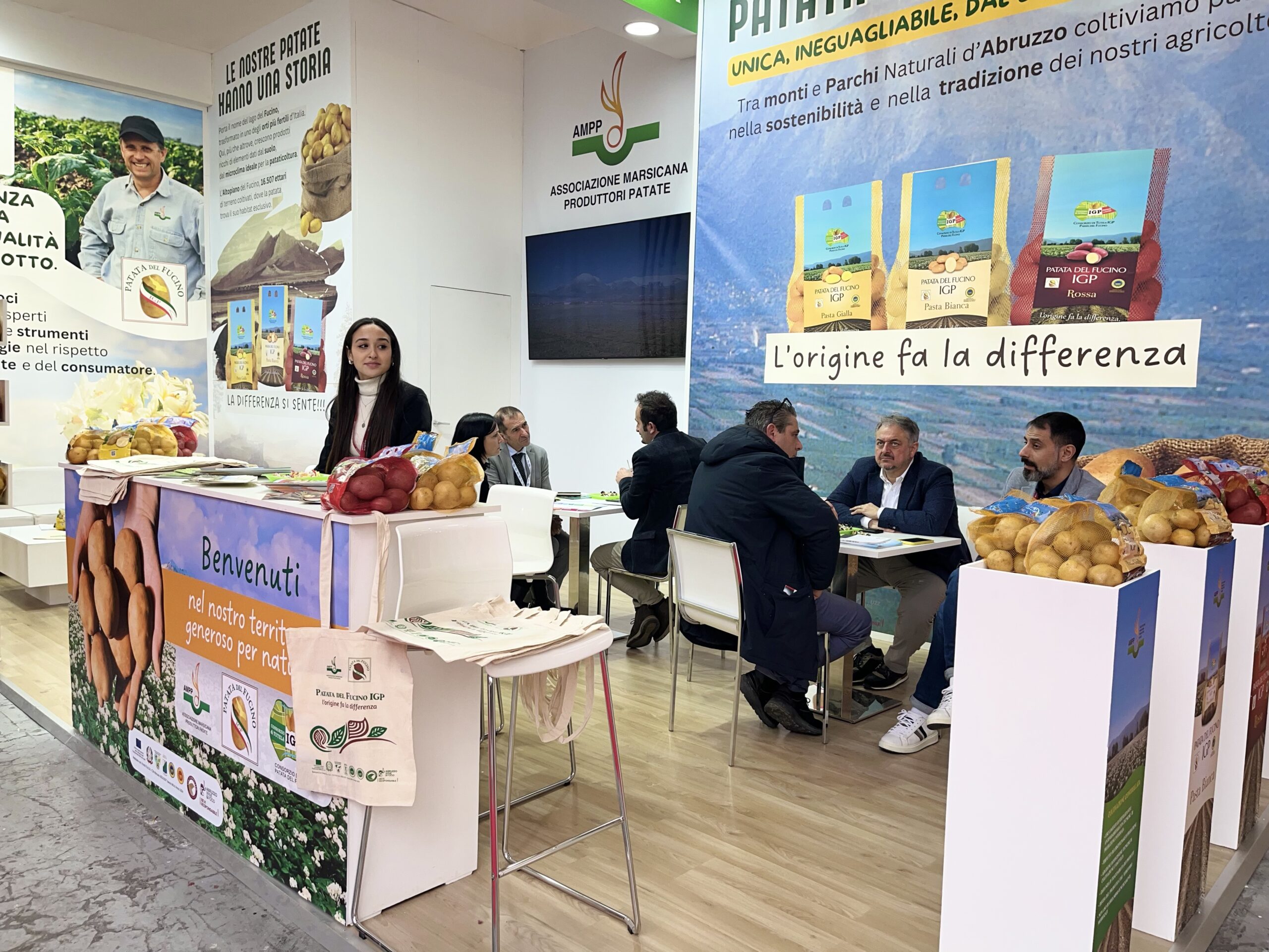 Con uno stand rappresentativo di 36 mq l’AMPP – Associazione Marsicana Produttori Patate – continua la sua azione di promozione, grazie anche ai fondi del F.E.A.S.R. – CSR Abruzzo, che porta la Patata del Fucino IGP ad essere un prodotto sempre più richiesto sul mercato italiano.