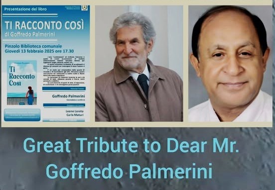 Ora una singolarità, con la notizia rimbalzata fino in India. L’intellettuale indiano Krishan Chand Sethi – fine scrittore, artista e manager che divide la vita tra l’India e il suo buen retiro in Nuova Zelanda –, appresa dai social network la notizia dell’evento culturale a Pinzolo, attraverso gli stessi mezzi ha rivolto a Palmerini un tributo di apprezzamento per la sua opera di scrittore. «Un grande tributo di stima al caro Goffredo Palmerini – scrive il dr. Sethi -, rinomato scrittore e icona dei media d’Italia e all’estero. Siete testimoni, nel mondo della letteratura e del giornalismo, di una nuova altezza che raggiunge la scrittura, che si distingue per eccellenza. Sono orgoglioso di rendere il mio grande tributo a Goffredo Palmerini, un genio creativo che rappresenta la letteratura e i media. La celebrazione del suo libro «Ti racconto così», che sarà presentato il 13 febbraio 2025 presso la Biblioteca Comunale di Pinzolo, non è solo un evento, ma un benvenuto a uno scrittore le cui parole parlano attraverso il tempo e la cultura, viaggiando attraverso la geografia. Palmerini è al contempo un cronista della storia, un custode delle storie, e un guardiano di molti ricordi che devono ancora essere creati. Ogni frase di questo libro intesse un magnifico tessuto di esperienza umana, dando vita a luoghi, persone ed emozioni. È un potere che nessuno ha posseduto così bene nell’equilibrare le narrazioni in modo armonioso, nell’intrecciare prospettive, nell’evocare lo spirito di un’epoca e nel conferire alla sua opera un impatto che sarà visibile per le generazioni a venire. C’è ancora molta strada da percorrere. L’opera di Palmerini rientra in una categoria che è come viaggiare nei corridoi del tempo, attraverso una lente invisibile agli occhi e al cuore umano. Riporta il battito del cuore della civiltà e riaccende la connessione con l’umanità. L’intera storia è splendidamente scritta con le voci di più continenti, ma allo stesso tempo dà vita a tutti quei momenti che sarebbero potuti facilmente perdersi nei venti del tempo. Ancora una volta congratulazioni a Goffredo Palmerini per questo prestigioso evento, che si terrà tra breve tempo.»Un tributo assai generoso verso Palmerini, forse ben oltre i meriti, che tuttavia sottolinea il rapporto di stima reciproca dell’intellettuale indiano con il giornalista e scrittore abruzzese.