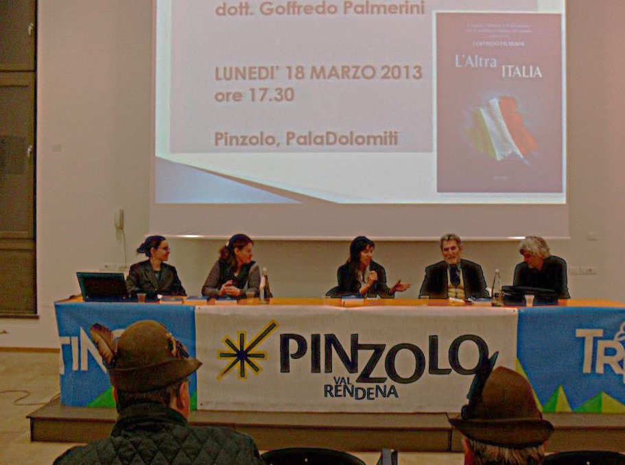 Non è casuale questo evento culturale a Pinzolo, né il primo dello scrittore aquilano che nell’amena cittadina trentina ha una solida consuetudine di amicizie, non solo con l’avv. Leone, suo concittadino e amico di giovinezza, ma con tante persone del luogo. Un’amicizia comunitaria, peraltro, quella tra Pinzolo e Paganica, popoloso centro del Comune dell’Aquila dove Palmerini e Leone sono nati, che trae origine dal rapporto di gemellaggio tra i Gruppi Alpini delle due cittadine trentina e abruzzese, acceso nel 2005 ed alimentato con periodici scambi di visite. Un rapporto rafforzato nel 2023 anche dal gemellaggio tra le Bande musicali dei due centri. Non sono solo queste, però, le motivazioni della forte amicizia tra le due comunità. Fu infatti il terremoto del 6 aprile 2009 che colpì L’Aquila e i centri circostanti a rendere per sempre indistruttibile l’amicizia tra le due città. Straordinaria fu la generosità di Pinzolo e di tutti i centri della Val Rendena, come dell’intero Trentino, nella vicinanza affettuosa e nel sostegno morale e materiale alla popolazione aquilana così duramente colpita dal sisma.