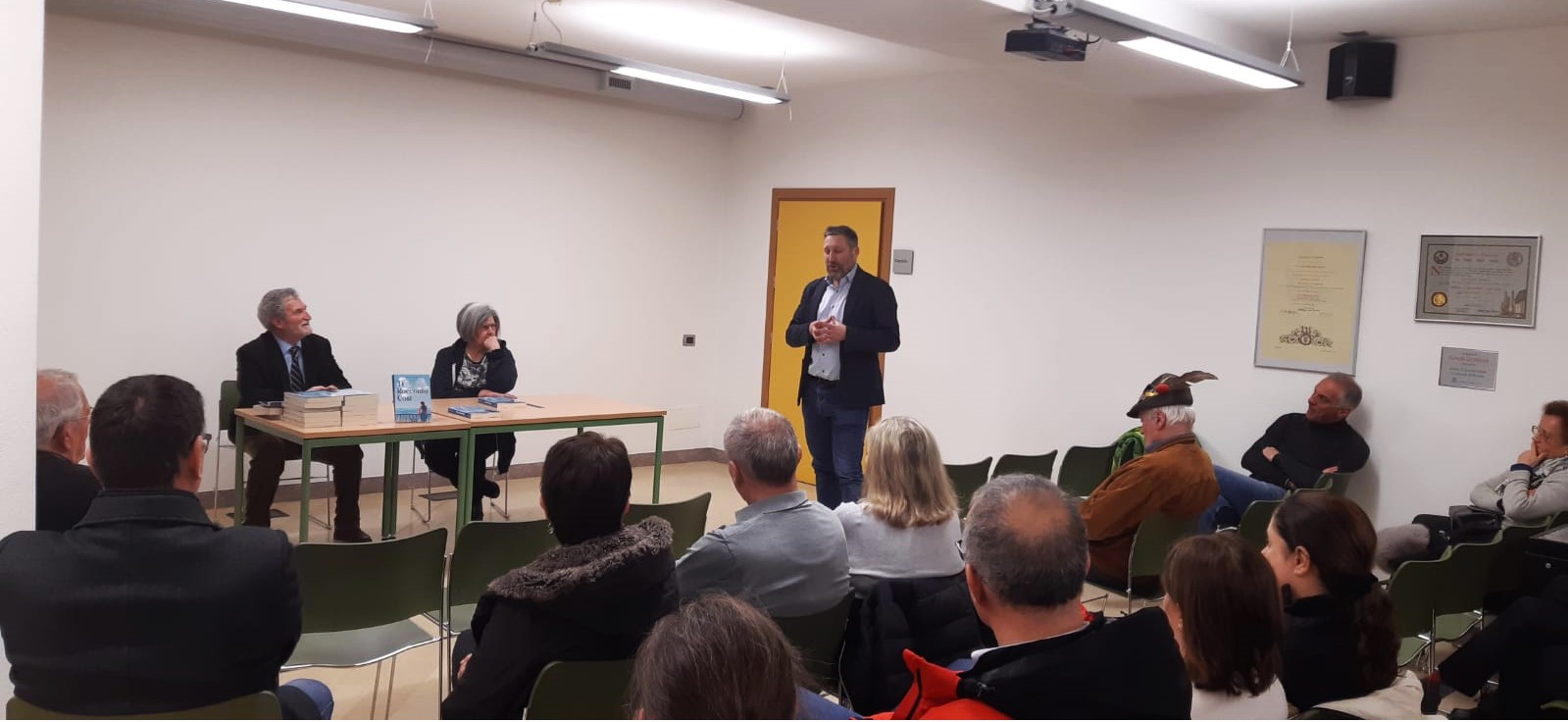 PINZOLO (Trento) – E’ stata una magnifica serata quella di ieri a Pinzolo, nella bella Biblioteca comunale, dove è stato presentato l’ultimo libro del giornalista e scrittore Goffredo Palmerini “Ti racconto così” (One Group Edizioni, 2024). Grande attenzione e tante emozioni hanno caratterizzato l’incontro aperto dall’intervento del sindaco ing. Michele Cereghini, dalle annotazioni della dr. Carla Maturi, direttrice della Biblioteca civica, e poi del dr. Loreto Leone, aquilano che da oltre trent’anni vive nella splendida cittadina turistica della Val Rendena e già funzionario del Comune di Pinzolo e Giudice onorario a Trento. È seguito l’intervento dell’autore Goffredo Palmerini, che ha spaziato dalle meraviglie della sua città, L’Aquila, che sta completando la sua rinascita dalle lacerazioni inferte dal terremoto del 2009 e che si avvia a vivere nel 2026 il ruolo di città Capitale italiana della Cultura, associato a quello di Capitale del Perdono, della Riconciliazione e della Pace che papa Francesco le ha riconosciuto il 28 agosto 2022 aprendo la Porta Santa della Basilica di Santa Maria di Collemaggio per la Perdonanza, il primo giubileo della storia della cristianità istituito da papa Celestino V nel 1294 nell’atto della sua incoronazione.