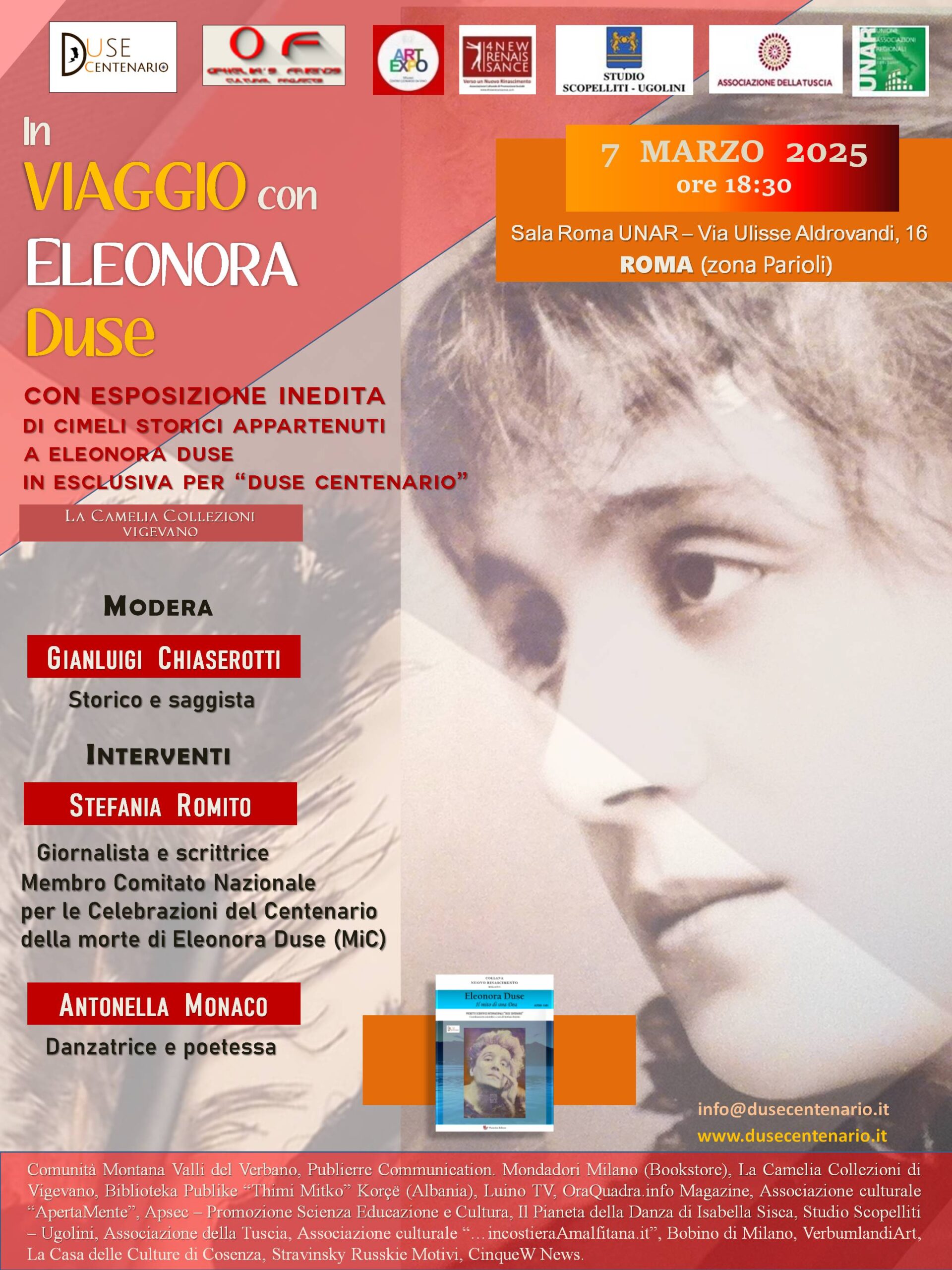 · Stefania Romito, responsabile di Duse Centenario e membro del Comitato Nazionale per le Celebrazioni della morte di Eleonora Duse, istituito dal Ministero dei Beni Culturali, che approfondirà il valore culturale e storico della figura della Duse;