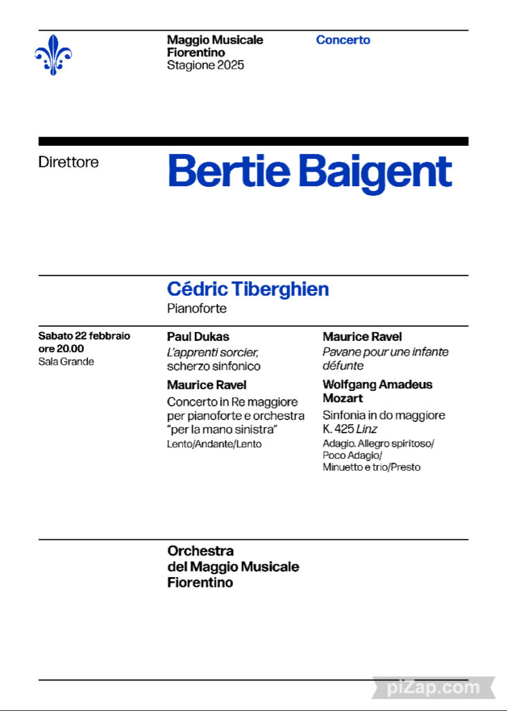 Al pianoforte nel corso dell’esecuzione del Concerto in re maggiore di Ravel Cédric Tiberghien, anche lui al suo debutto sul palco del Maggio. Interprete apprezzato per la sua versatilità, come dimostra il suo vasto repertorio, ha collaborato con alcune delle più importanti orchestre del panorama internazionale, fra cui i Berliner Philharmoniker, la London Philharmonic Orchestra, la San Francisco Symphony, l’Orchestre National de Lyon e la Tokyo Philharmonic Orchestra. Ha inoltre all’attivo un’importante carriera come musicista da camera e ha ricevuto cinque Diapason d’Or, ambito premio conferito dai critici della rivista francese “Diapason” alle registrazioni di musica classica.