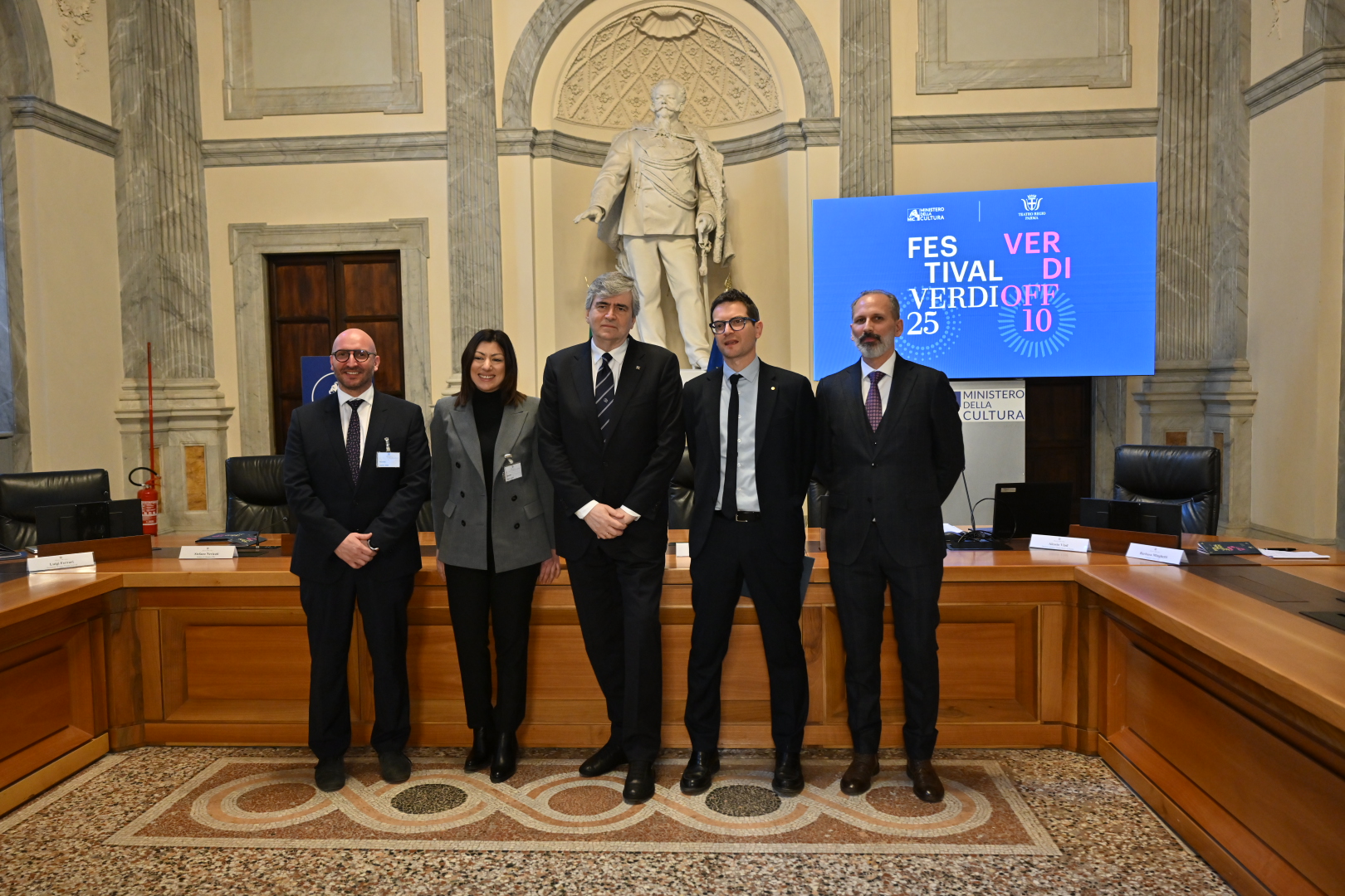 Festival Verdi compie 25 anni e il suo enfant terrible, Verdi Off, 10. Un doppio anniversario importante che il Teatro Regio di Parma ha festeggiato a Roma al Ministero della Cultura alla presenza del Sottosegretario di Stato on. Gianmarco Mazzi con la conferenza di presentazione del programma che si svolgerà dal 20 settembre al 19 ottobre 2025 a Parma e Busseto, nelle terre natali del Maestro, intorno al 10 ottobre, giorno del suo compleanno.