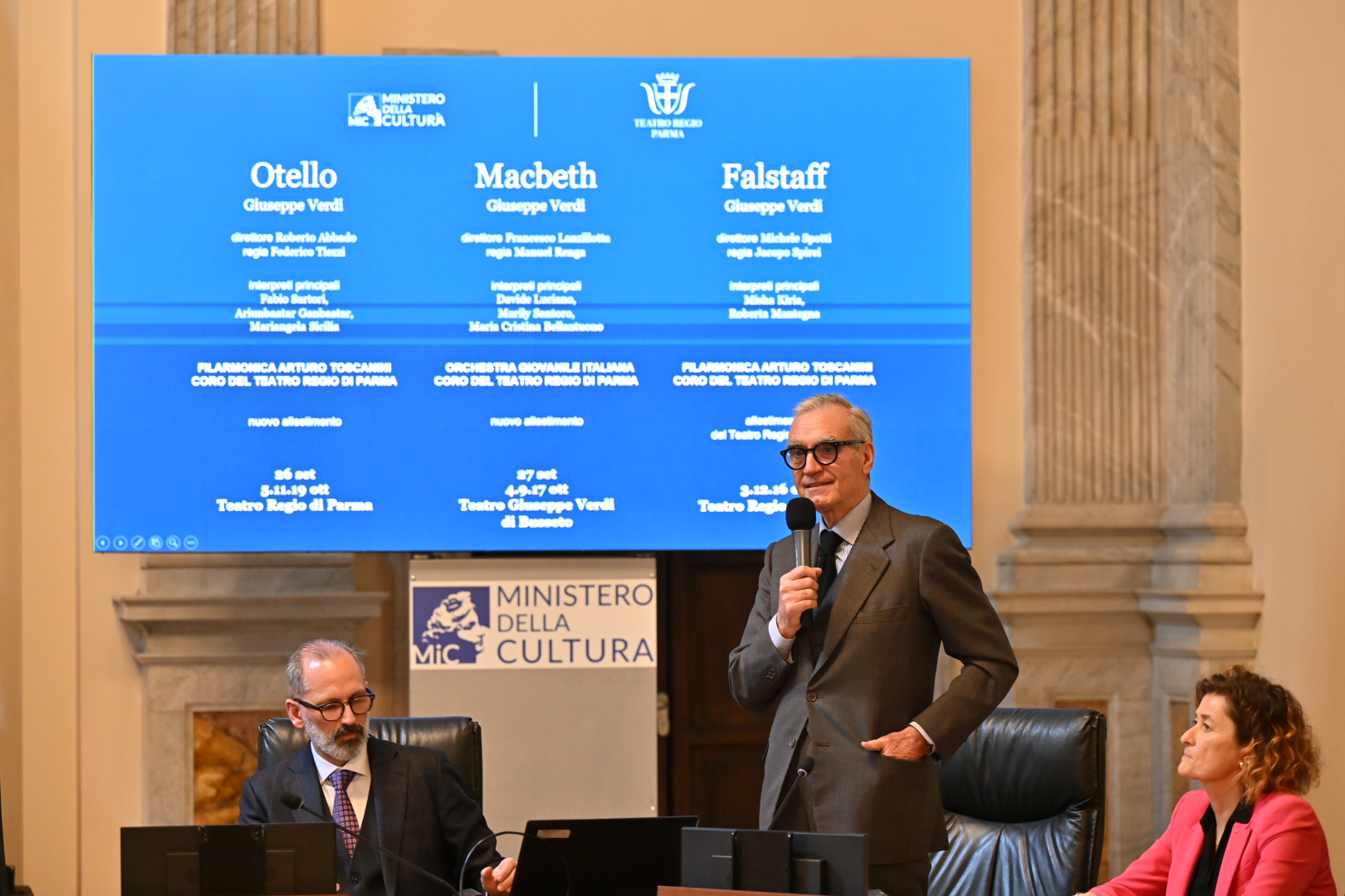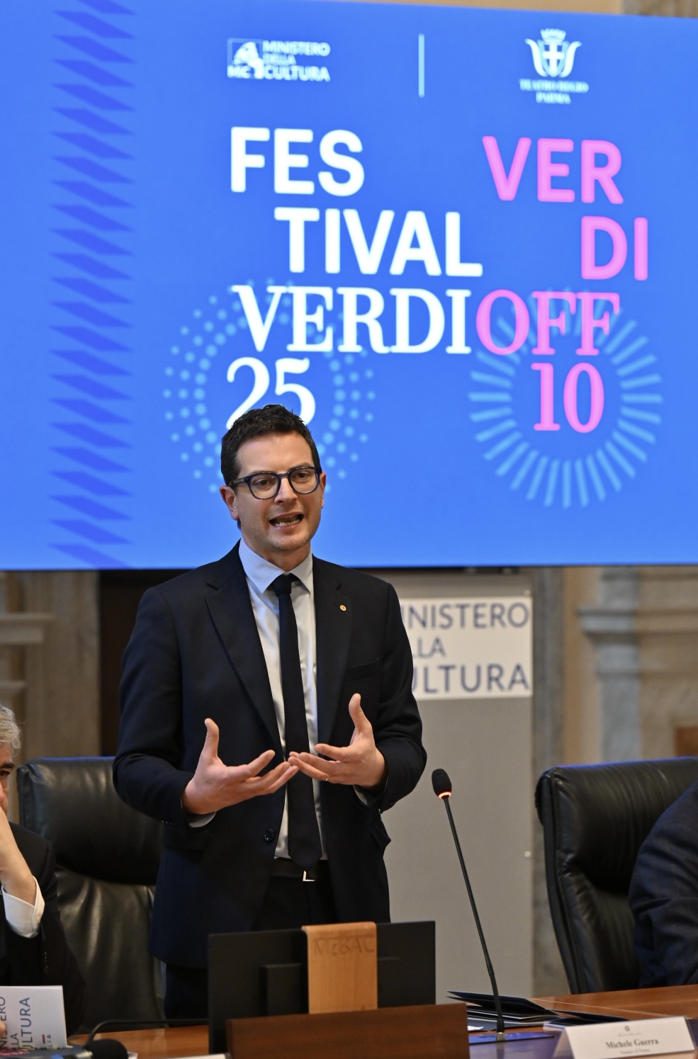 Verdi è un gigante. L’Italia nasce con la sua musica, che in forza del suo genio ha saputo dare verità e incoraggiamento al monito solenne. Fatta l’Italia gli italiani si sono riconosciuti nella sua partitura e nella sua opera immortale c’è la nostra identità nazionale. Il Festival Verdi compie 25 anni, è cresciuto ed è in salute. Nel 2025 ha scelto con sapienza di celebrare questo traguardo importante dedicando questa edizione al rapporto tra Verdi e Shakespeare, un connubio mirabolante che ci fa sognare, con Otello, Macbeth, Falstaff. Il Festival è arricchito dal suo enfant terrible Verdi Off, che compie 10 anni e avvicina il Maestro di Busseto alle giovani generazioni, perché la musica affratella e deve stare tra la gente. Il Ministero della Cultura crede e sostiene le iniziative come la vostra, l’auspicio è quello di poter accrescere sempre di più il nostro supporto. Viva l’Italia, Viva Verdi!