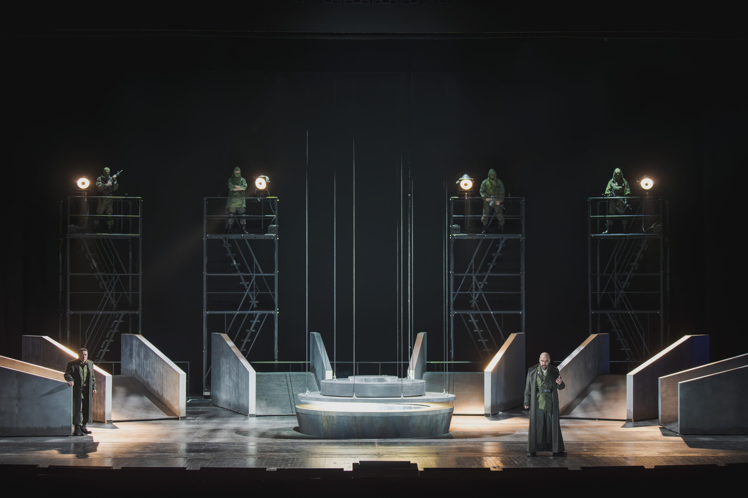 Parlando di questo nuovo allestimento Andrea De Rosa – che torna a curare uno spettacolo a Firenze dopo essere stato assistente di Mario Martone per l’Antigone che aprì il 700 Festival del Maggio e aver messo in scena Goyescas di Enrique Granados del gennaio 2016 – ha sottolineato come la ‘sua’ Norma (titolo con cui si è già confrontato a Caracalla nel 2012) non punta a ricostruire in modo certosino gli ambienti descritti nel libretto ma neppure ad attualizzarlo in modo eccessivo: «Definirei il mio allestimento di Norma una reinterpretazione, vale a dire la traduzione del contesto dell’opera in ottica moderna. Quindi non ci troviamo esattamente nella Gallia invasa dai romani, ma siamo comunque in un qualche Paese occupato da milizie straniere’ Un altro aspetto decisamente importante è la messa in funzione dei nuovi ponti mobili della Sala Grande del Maggio, essenziali per questa nuova messinscena: ‘L’opera richiede una doppia scenografia, ossia una esterna per il plot storico, quello della dominazione romana sulla Gallia, l’altra interna per il plot privato, la vicenda intima di Norma, Pollione e Adalgisa, in cui ho chiesto ai cantanti di recitare come attori di prosa: per passare rapidamente da una scenografia all’altra, il Teatro del Maggio mette in funzione per la prima volta il nuovo sistema di ponti mobili. Pensando invece ai soldati invasori, che sono parte essenziale della vicenda, e per dar corpo alla loro ferocia, ci siamo ricordati delle sevizie perpetrate dai militari statunitensi a danno dei detenuti nel carcere iracheno di Abu Ghraib’