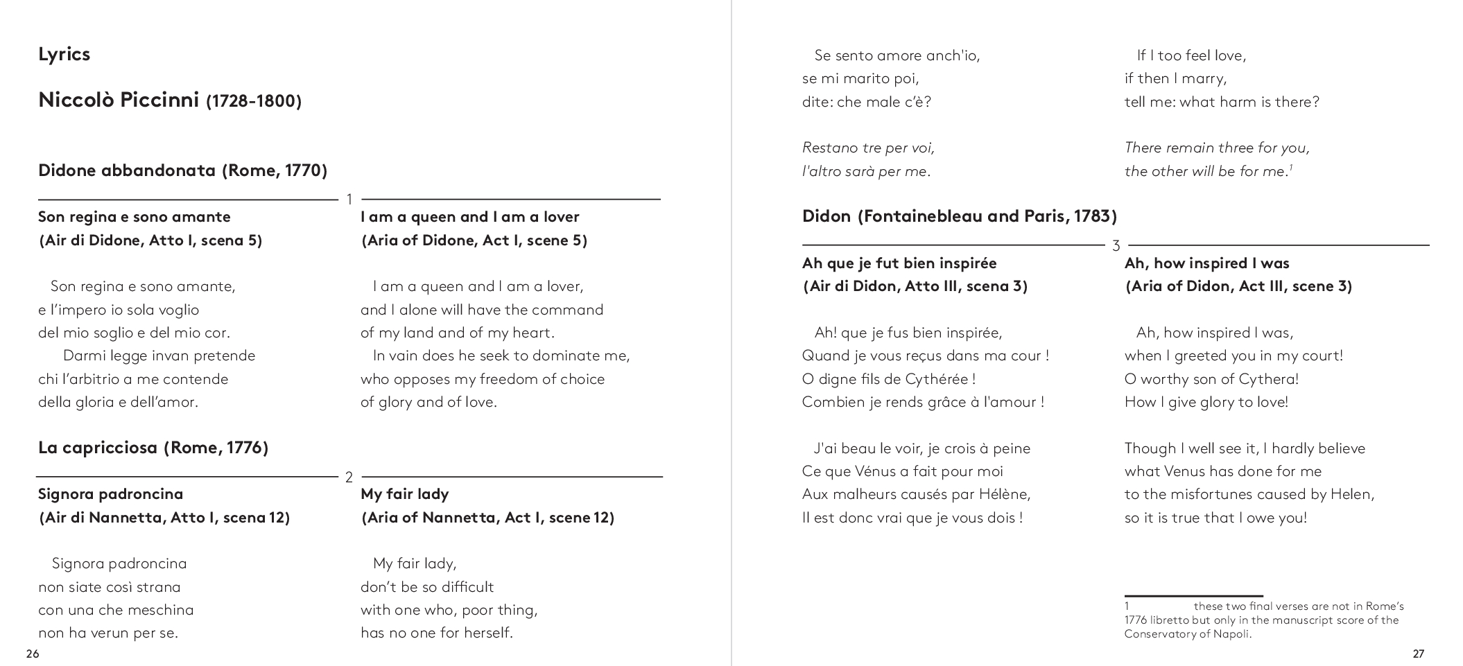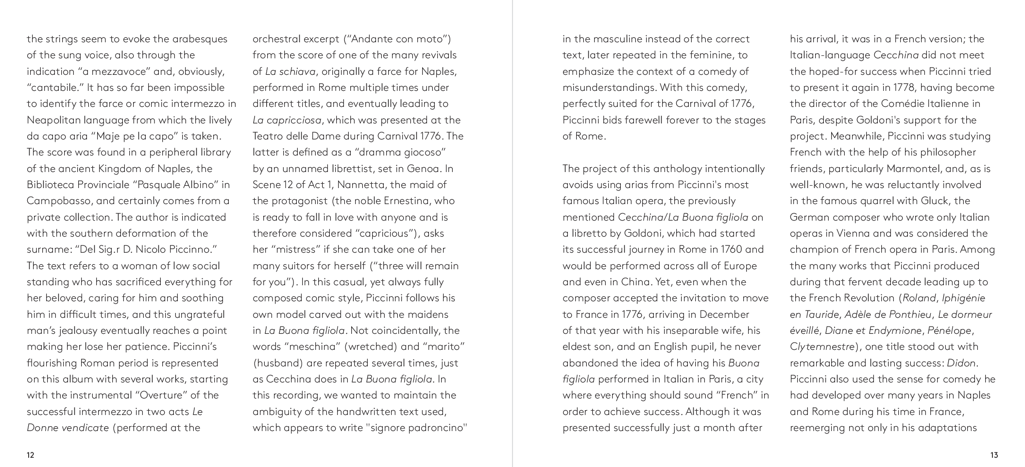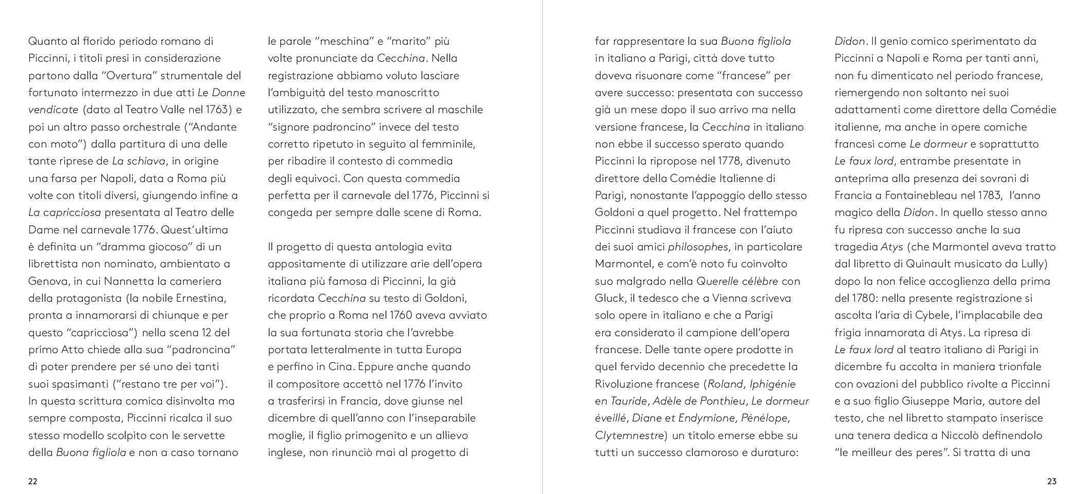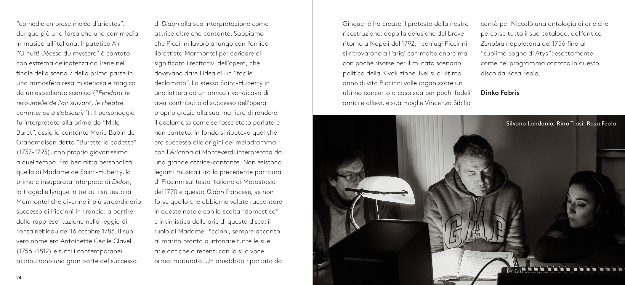 Dalla più celebre Didone Abbandonata su libretto di Metastasio, da cui l’aria di Didone che dà il titolo all’album, alla meno nota operetta comica francese Le faux lord, “Son regina e sono amante” ripercorre dunque l’intera carriera del compositore barese. A guidare la scelta e l’orchestrazione dei brani, accuratamente selezionati da Feola, Florio – che con Piccinni condivide il luogo di nascita – e il musicologo Dinko Fabris e trascritti dagli originali del XVIII secolo, il desiderio di farli rivivere nella loro dimensione più intima: quella delle esecuzioni private dell’epoca che spesso vedevano protagonista la voce della moglie di Piccinni, Vincenza Sibilla, figura preziosa per il successo del grande musicista. L’interpretazione di Rosa Feola, accompagnata da un’orchestra di soli archi, valorizza così la ricchezza espressiva e stilistica del canto settecentesco, quella cura della melodia “cantabile»a fondamento della scuola napoletana, in un tributo che va oltre Piccinni stesso per celebrare la grande tradizione del canto lirico italiano, da poco riconosciuto patrimonio immateriale dell’umanità dall’UNESCO.