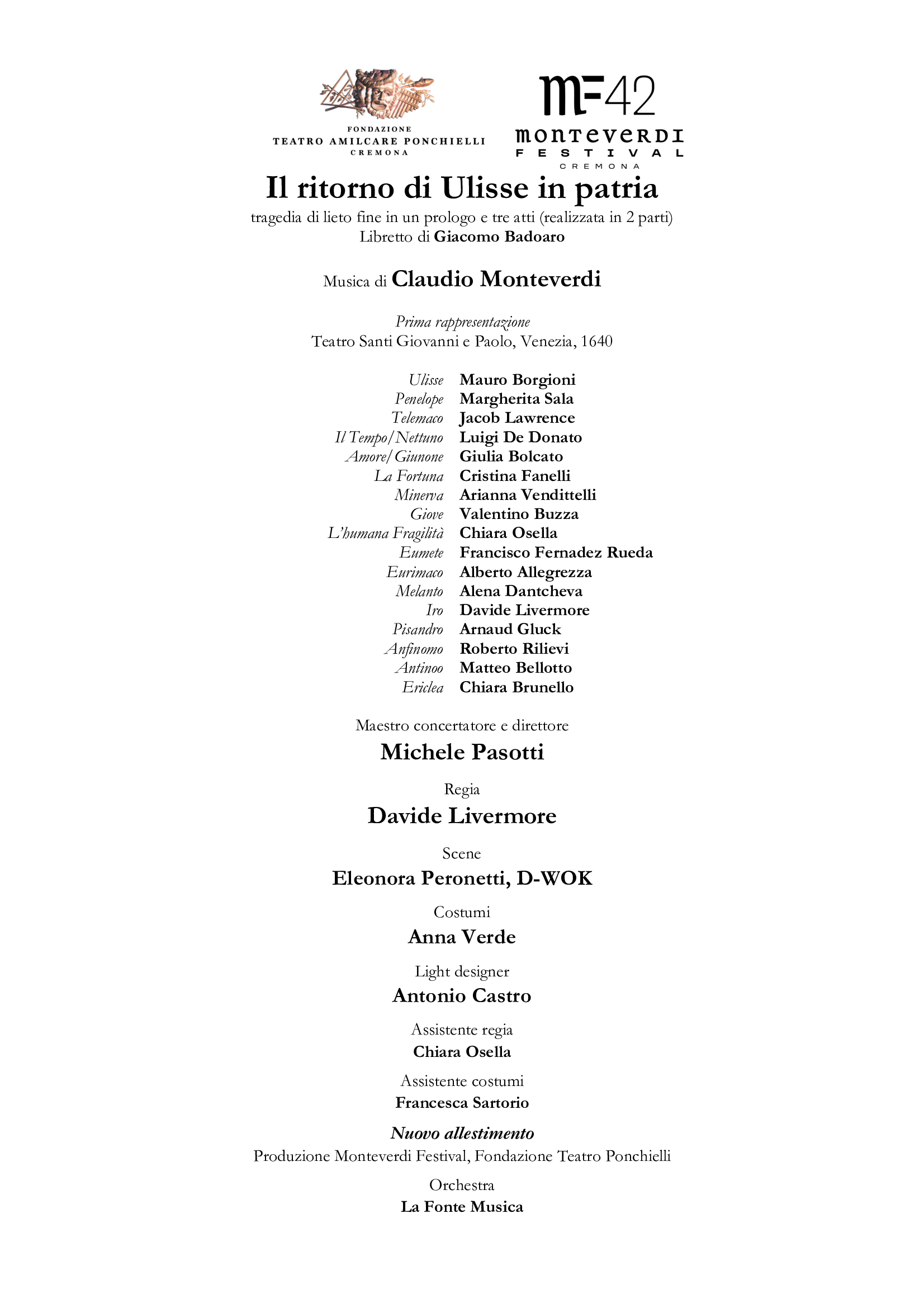 «L’edizione di quest’anno è dedicata agli “Heroes”,gli eroi, figure emblematiche della tradizione musicale e teatrale che incarnano valori di coraggio, sacrificio e destino — dice Andrea Cigni, Direttore artistico del Festival. Attraverso due grandi produzioni d’opera, si mettono in dialogo Monteverdi e il suo allievo Francesco Cavalli, a testimonianza della continuità e dell’evoluzione del linguaggio operistico. Da un lato, Il ritorno di Ulisse in patria monteverdiano, in cui l’eroe omerico affronta le sue ultime prove per riconquistare il regno e l’amore di Penelope; dall’altro, Ercole Amante di Cavalli, il titanico viaggio del semidio greco tra amore, potere e divinità. Due racconti mitologici che, attraverso la musica, restituiscono la complessità dell’animo umano».